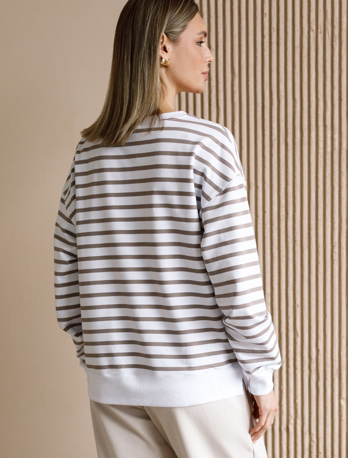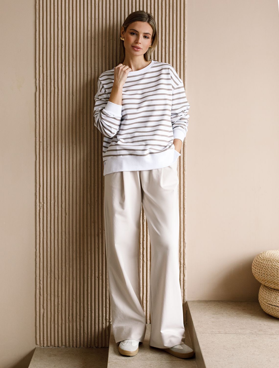 Ст.цена 2590р Джемпер из тонкого премиального футера с эластаном D49.055 белый-кофе полоса