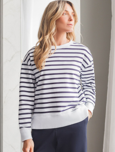 Ст.цена 2590р Джемпер из тонкого премиального футера с эластаном D49.055 белый-т.синий полоса
