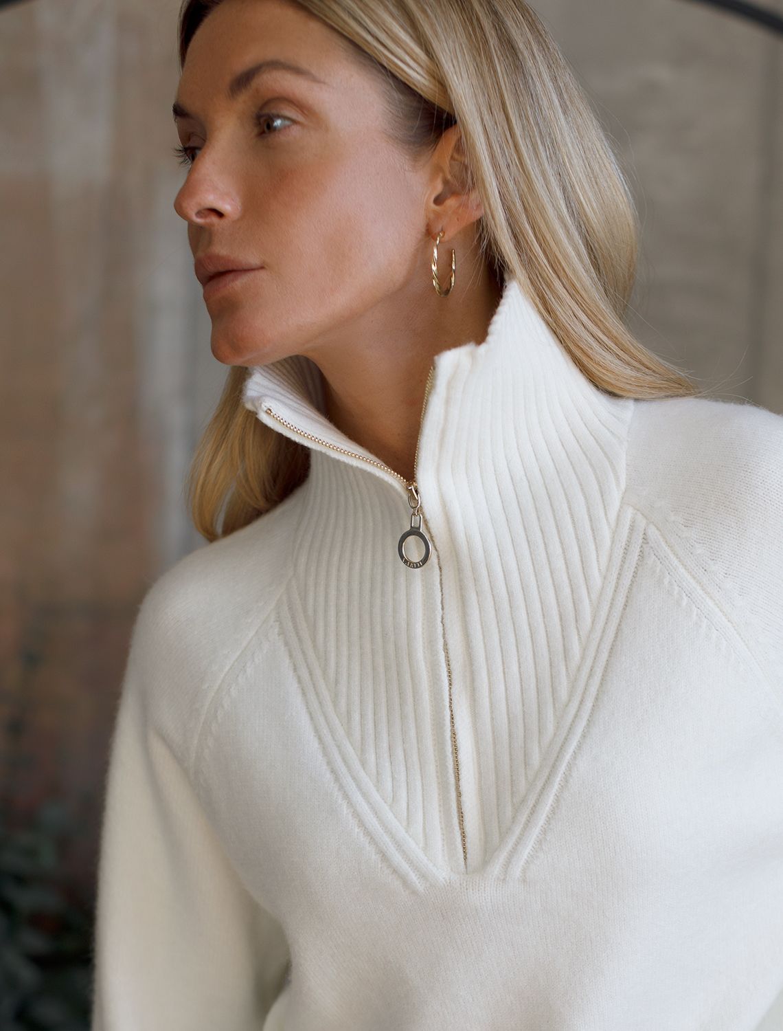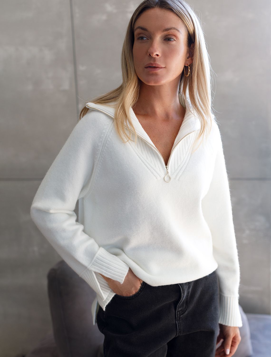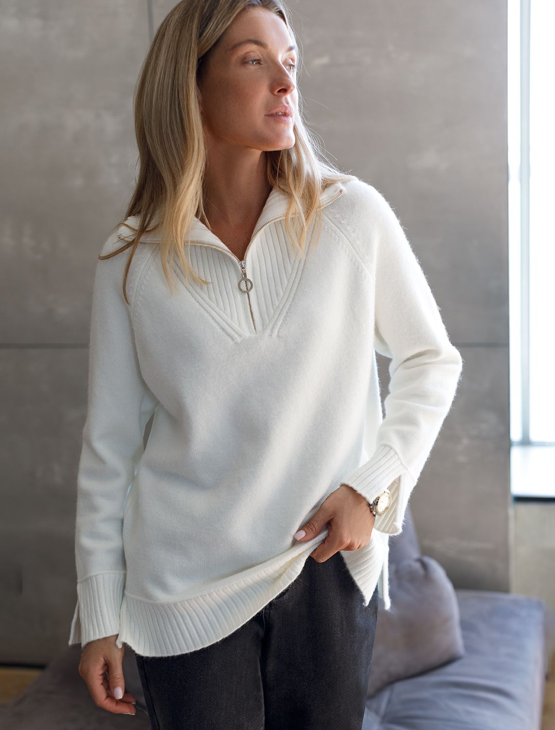 Ст.цена 2590р Джемпер с воротом на молнии из пряжи с кашемиром D34.132 натуральный белый