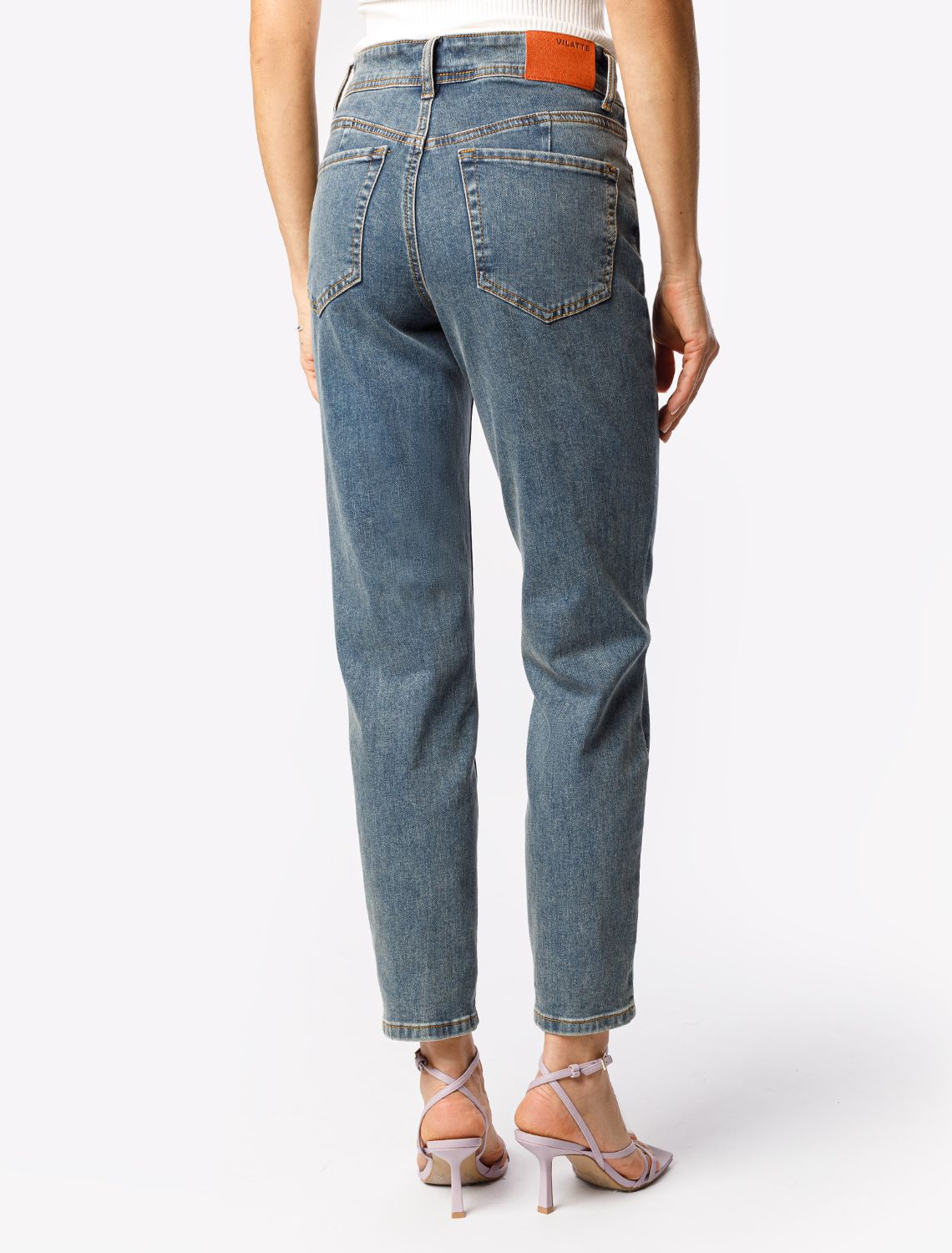 Ст.цена 2590р Джинсы mom-fit из эластичного денима D54.065 серо-голубой