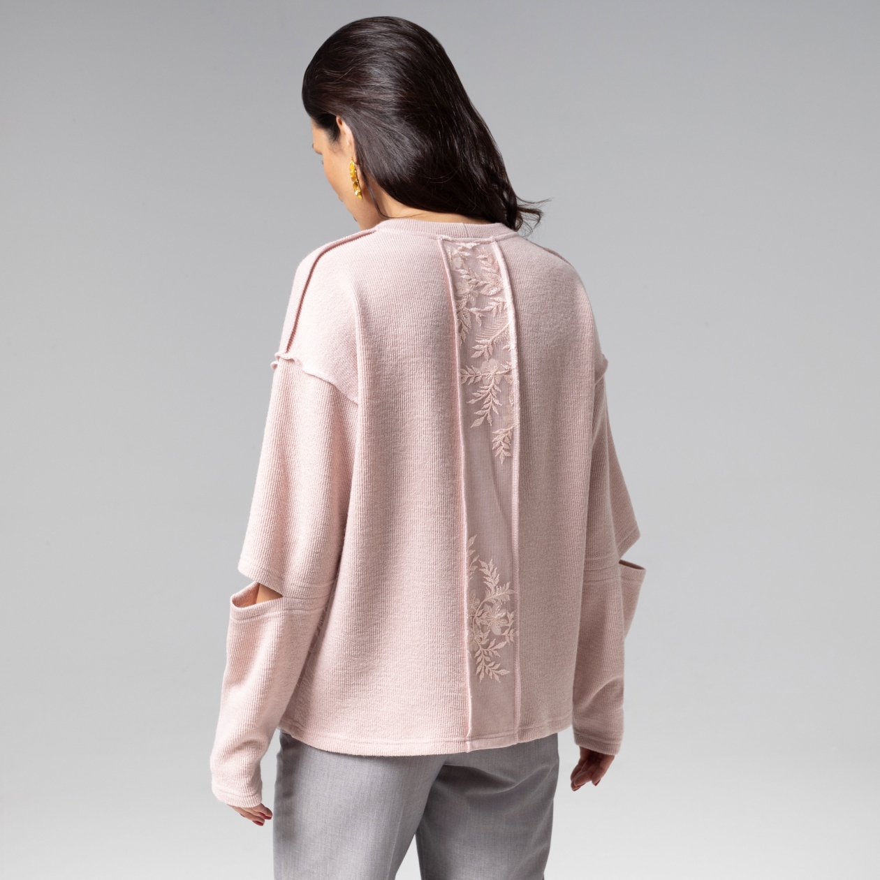 Нежно-розовый лонгслив ЧАРУТТИ из коллекции PREMIUM с ажурной игрой деталей – воплощение женственности в casual-интерпретации. Основой образа служит роскошная ткань плотного плетения с мягкой матовой фактурой. Дополняет образ благородство пастельного оттенка, а художественные прорези на рукавах создают эффект воздушности. Объёмный цветочный 3D-декор добавляет скульптурную глубину, превращая базовый силуэт в предмет высокого fashion-искусства. Многоступенчатый контроль качества пошива гарантирует безупречную посадку и долговечность каждой строчки.