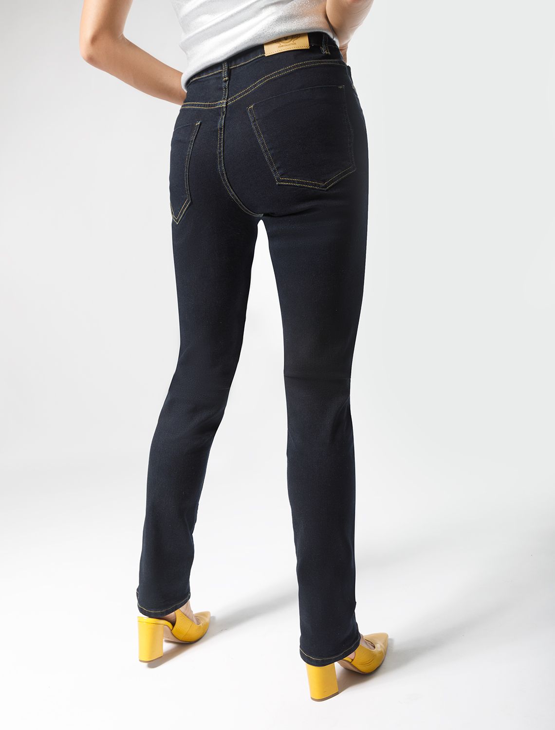 Ст.цена 2590р Удлиненные прямые джинсы из эластичного денима D54.297 темно-синий