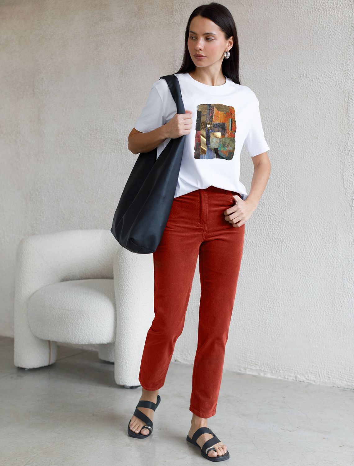 Брюки скроют недостатки фигуры, вытягивают силуэт и удлиняют ноги, благодаря завышенной талии. Пять карманов, как у джинс, добавляют функциональности, а высококачественная фурнитура гарантирует надёжность. Актуальная однотонная расцветка позволит легко комбинировать штаны с другими вещами из гардероба. Брюки джинсы хорошо комбинируется с вязаным трикотажем, блузками и денимом. Как альтернатива классическим брюкам, в нестрогий офисный дресс-код.