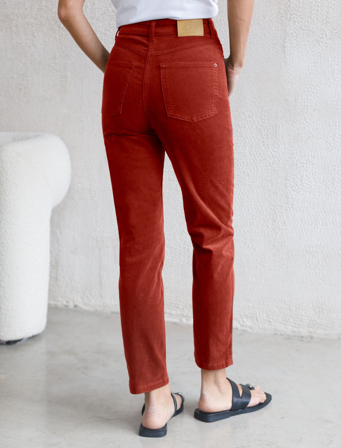 Ст.цена 2650р Укороченные эластичные брюки слим из микро вельвета D24.283 терракотовый