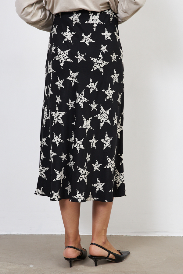 Юбка из вискозной ткани, слегка расширенная книзу. Крой юбки по косой, на линии талии скрытая резинка.