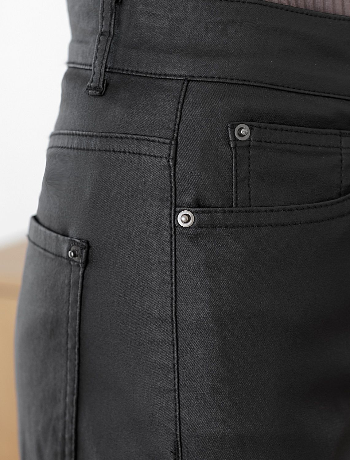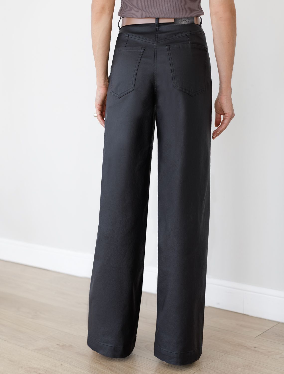 Ст.цена 2690р Брюки-трубы из эластичного хлопка с эффектом кожи D24.277 черный
