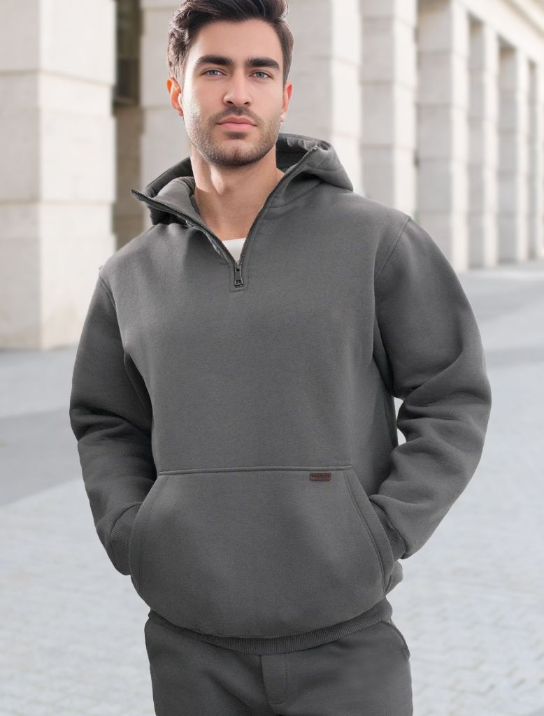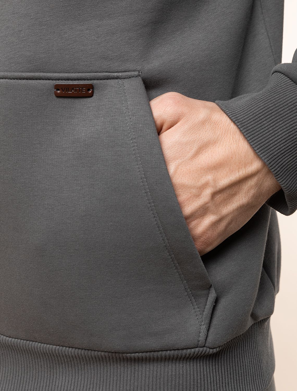 Ст.цена 2690р Худи с воротом на молнии из теплого футера-трехнитки U49.022 серый