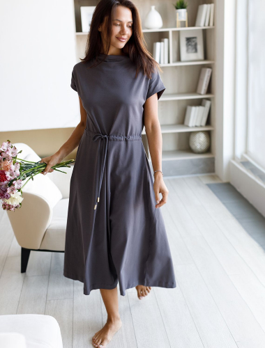Ст.цена 2690р Платье с цельнокроеным рукавом из премиального хлопка D42.109 серый