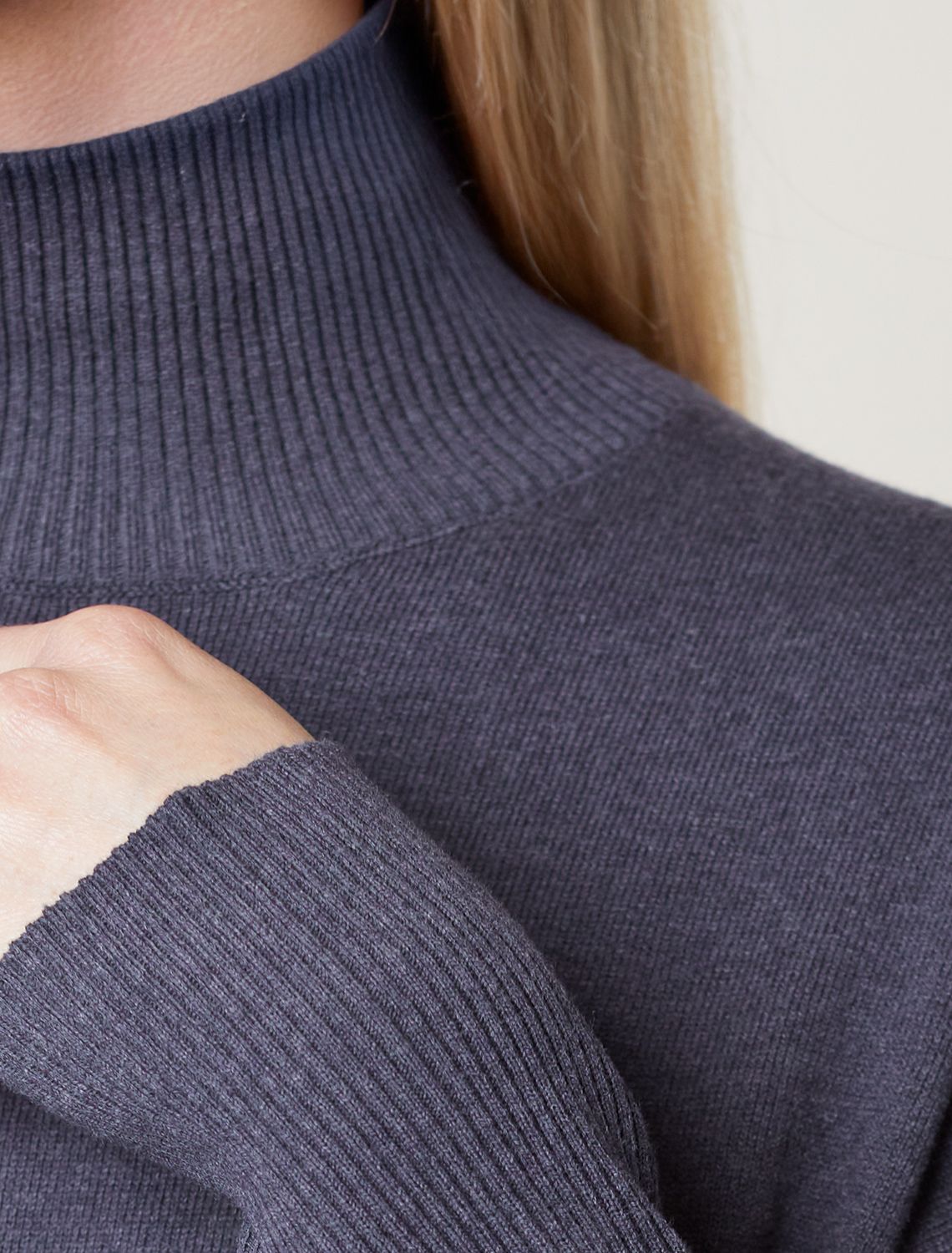 Платье тонкой вязки выполнено из хлопка. Лаконичная модель с высоким воротом дополнена манжетами и разрезами по бокам. Изделие свободно сидит по фигуре и не сковывает движений. Мягкая пряжа очень приятная к телу не колется и сохраняет тепло при этом не перегревая. Изделие дополнено металлическим логотипом бренда.