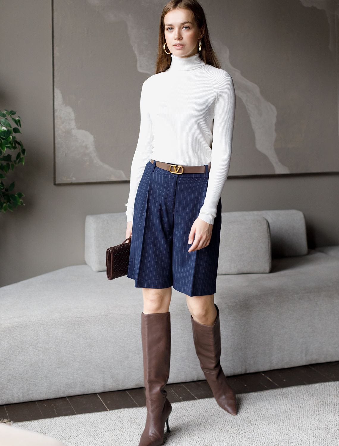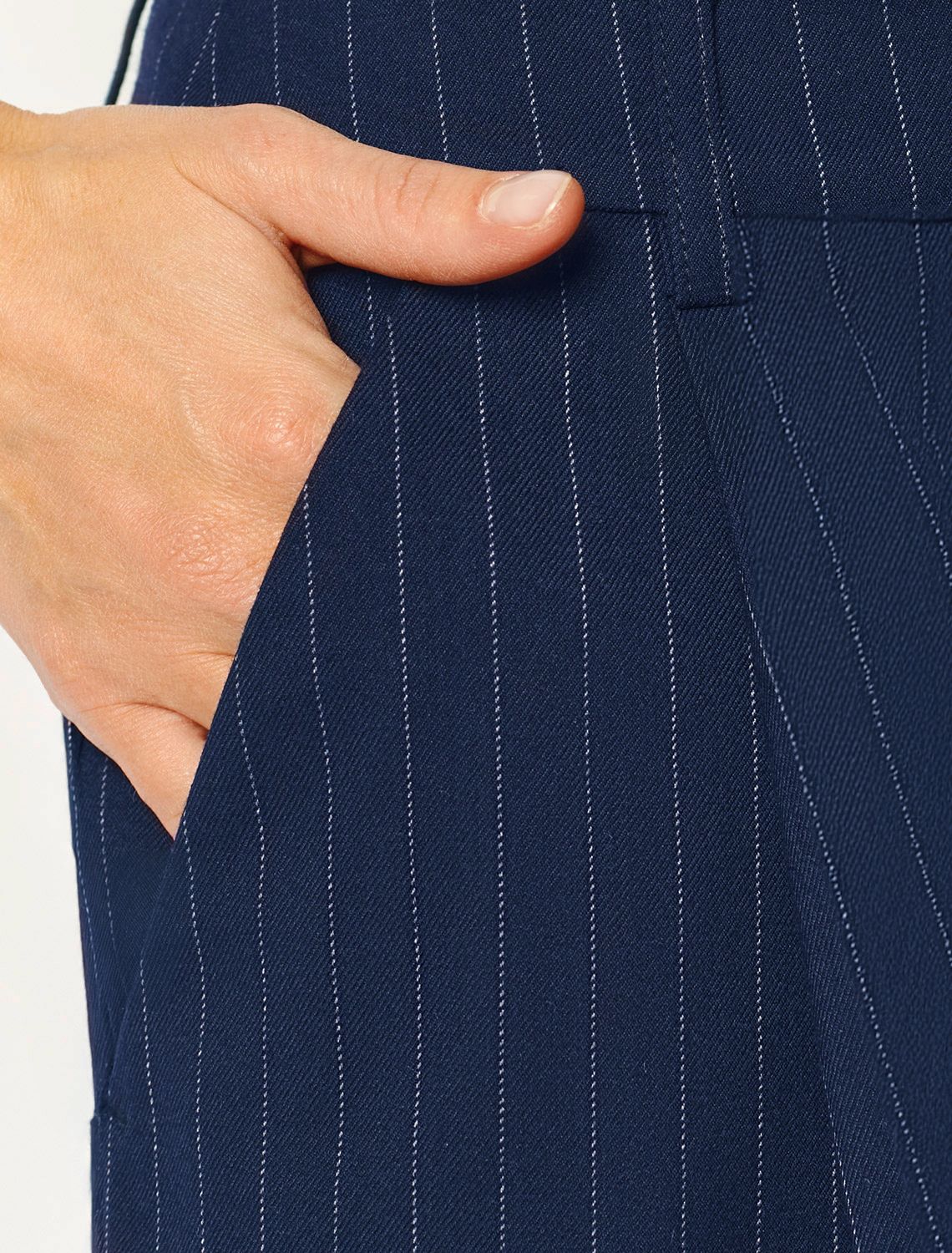 Шорты-бермуды выполнены из костюмной ткани в полоску. Модель свободного кроя дополнена боковыми и задними карманами. Изделие не сковывает движений и подходит для любого типа фигуры. Сочетается в костюме с жилетом D27.001