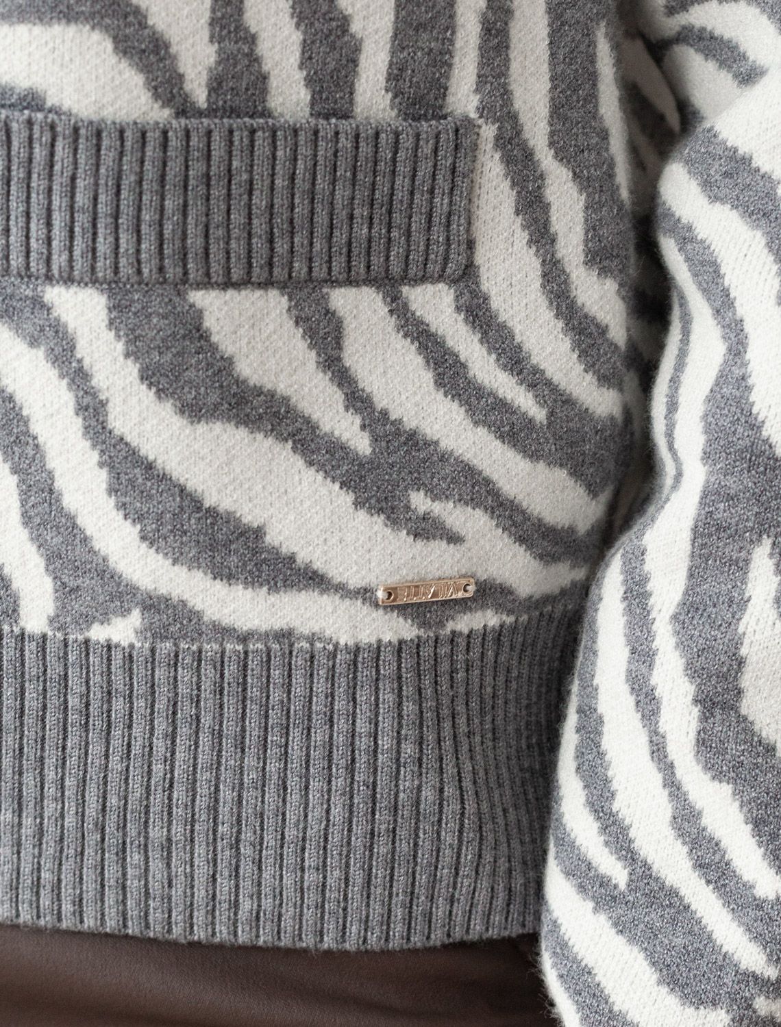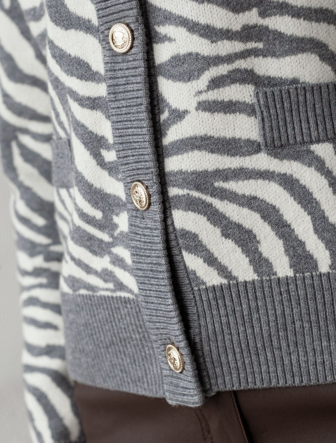 Жакет серого цвета жаккардовой вязки выполнен из нежной пряжи на основе вискозы с добавлением кашемира. Модель с круглым вырезом и золотистой фурнитурой выглядит дорого и роскошно, приятно ощущается на теле и поддерживает комфортный микроклимат. Жаккардовое вязание - это один из самых дорогих способов изготовления трикотажных изделий, так как для вязания используется сразу несколько цветов нитей. Жаккард вяжется намного дольше, чем однотонное полотно, имеет гораздо больший вес и плотность. Благодаря этому трикотаж дольше сохраняет красивый внешний вид, не пилингуется и не подвержен спуску петель.