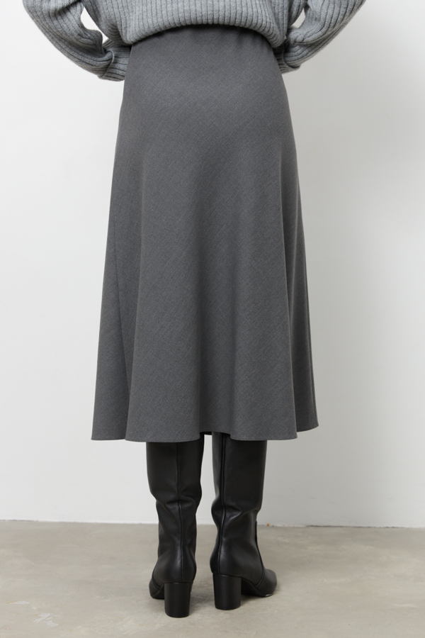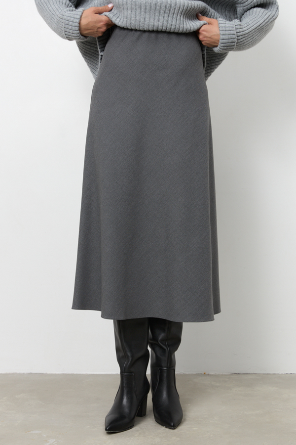 Юбка из костюмной ткани, слегка расширенная книзу. Крой юбки по косой, на линии талии скрытая резинка.