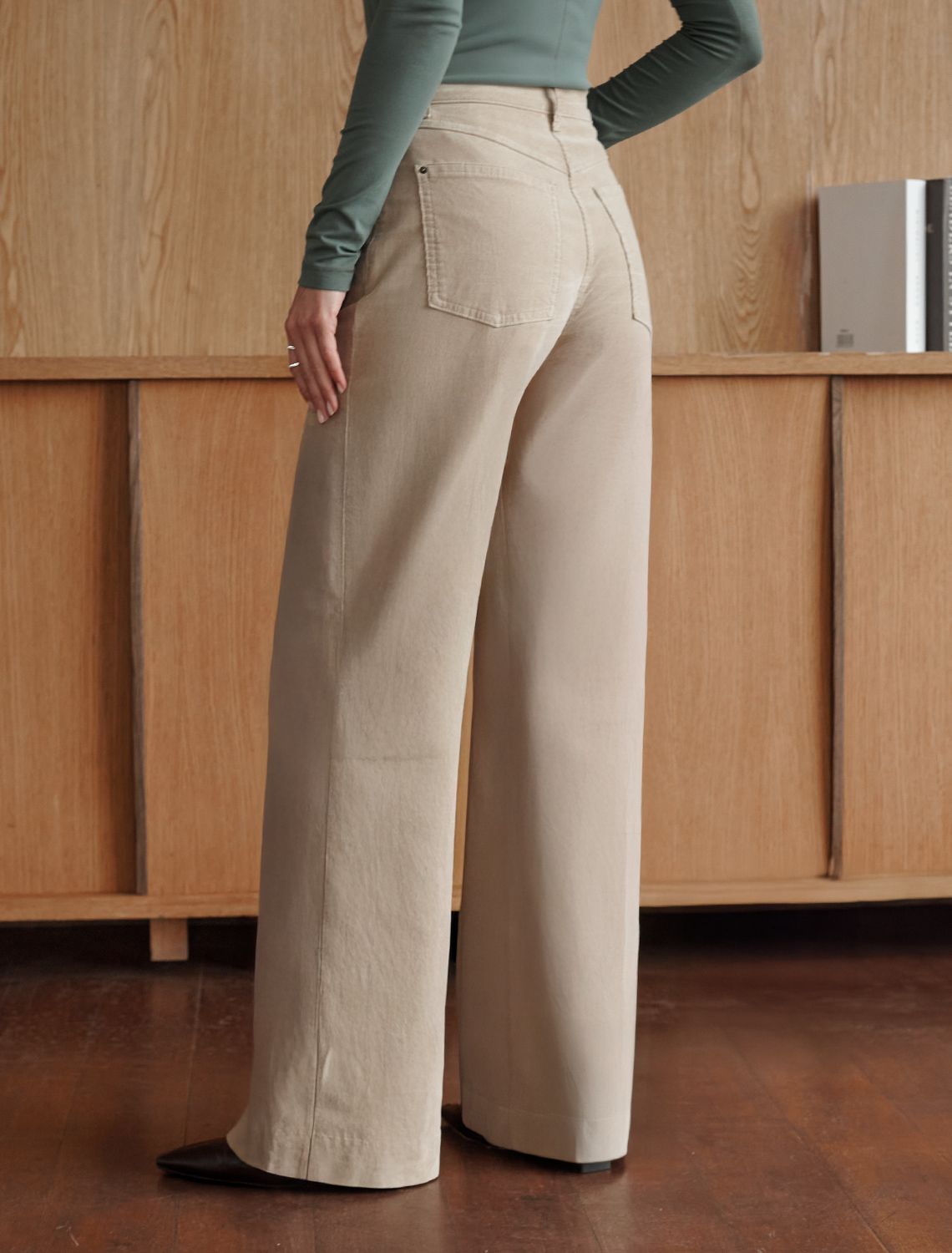 Ст.цена 2790р Брюки из эластичного микро-вельвета D24.278 светло-бежевый