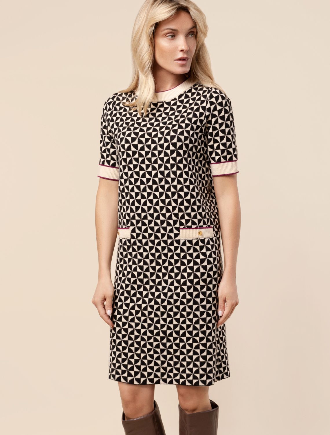 Ст.цена 2790р Платье жаккардовой вязки с кашемиром D32.073 черный-бежевый