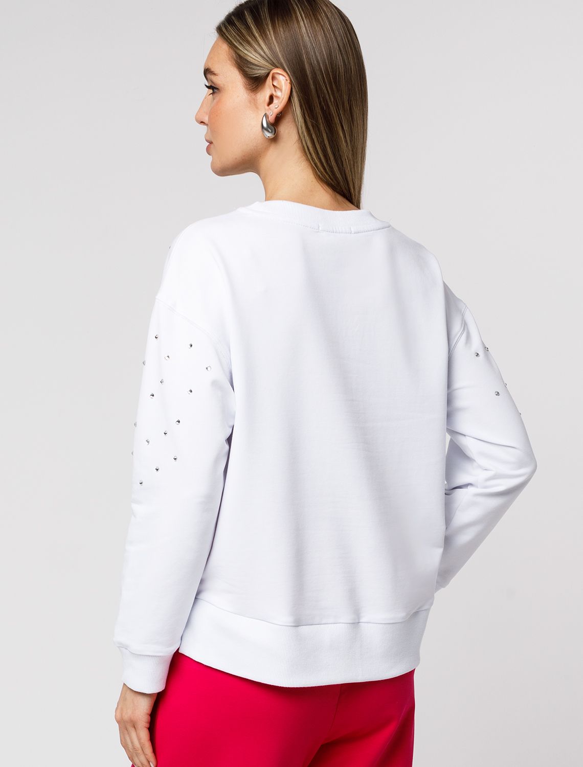 Ст.цена 2790р Свитшот из эластичного футера с принтом стразами D49.072 белый_стразы