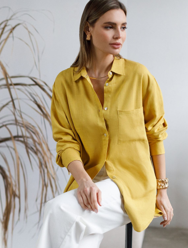 Ст.цена 2890р Блузка изо льна с вискозой D29.244 горчичный