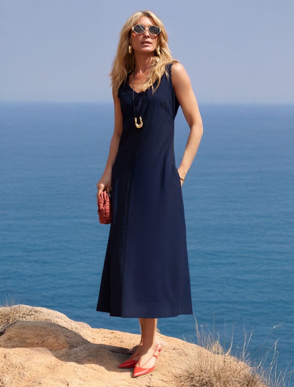 Платье с V-вырезом выполнено из плотного лиоцелла. Лаконичная модель с открытыми плечами и слегка расклешённым низом. Ткань изделия отлично держит форму, плавно драпируется и не просвечивает. В теплое время года приятно охлаждает кожу. Добавление синтетических волокон в составе изделия, предотвращает сминаемостьи поддерживает формоустойчивость.