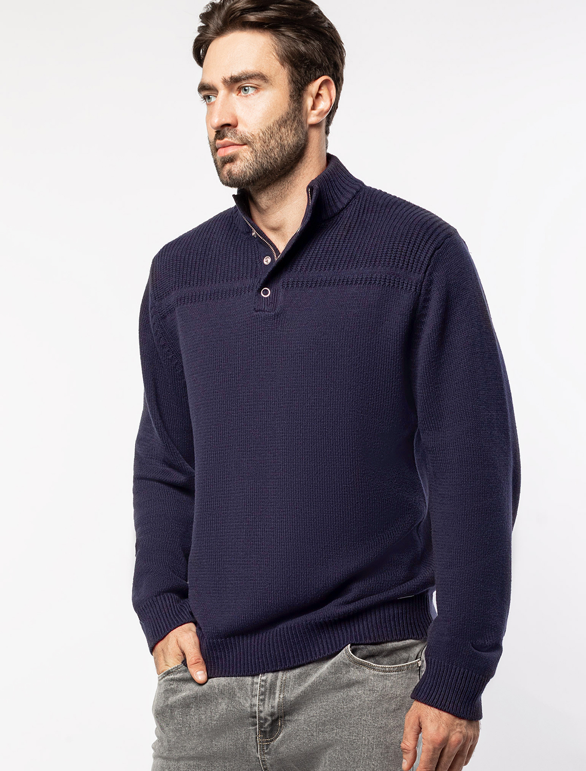 Ст.цена 2890р Свитер крупной вязки с застежкой на крупные кнопки U39.008 темно-синий