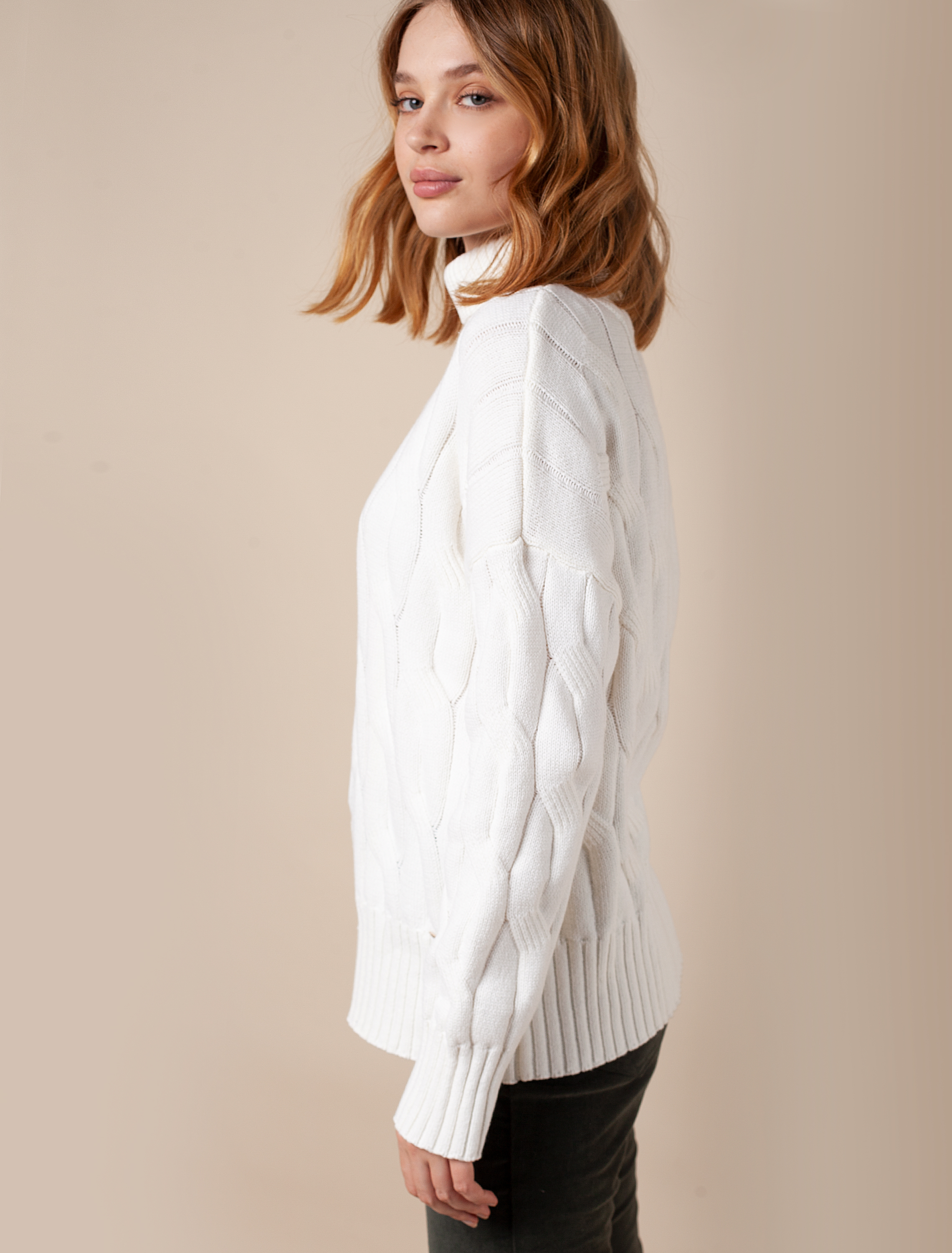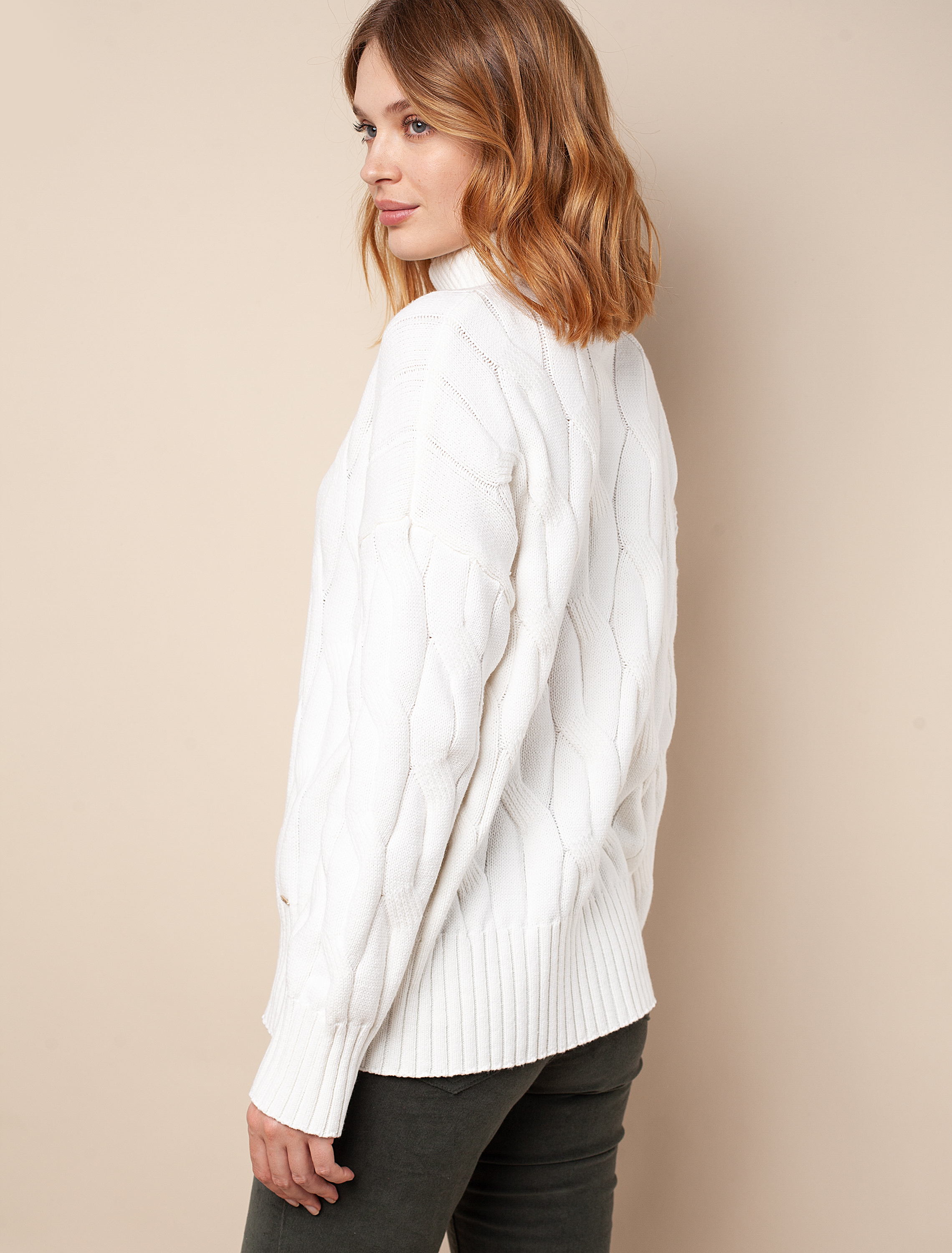 Ст.цена 2690р Теплый свитер из хлопка с акрилом крупной вязки D34.181 белый
