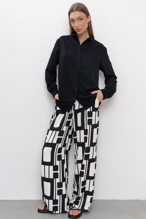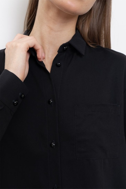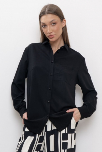 Блуза свободного силуэта. Воротник отложной, рукава на манжете. Блуза представлена в двух цветовых решениях. Завершит образ к любым брюкам, джинсам, юбкам. Уместна для нахождения в офисе в любое время года.