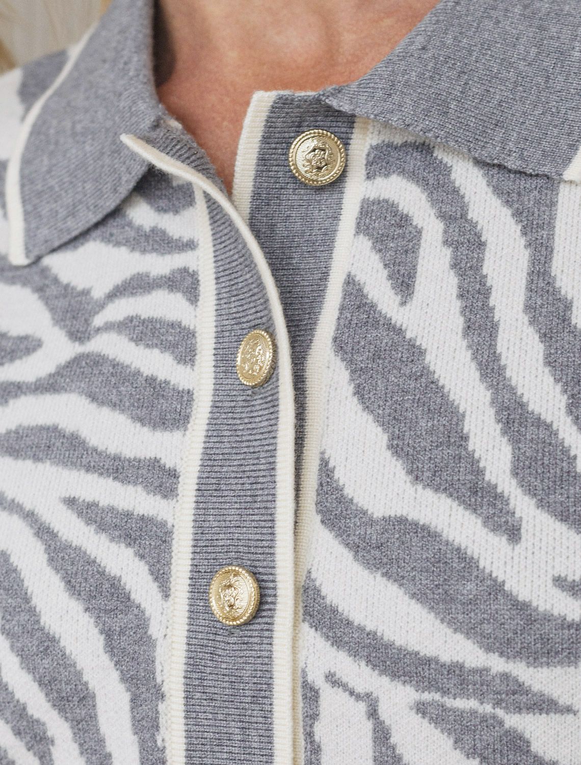 Платье жаккардовой вязки выполнено из нежной пряжи на основе вискозы с добавлением кашемира. Модель прямого силуэта с застежкой планкой как у поло. Фигурные золотистые пуговицы вносят изысканности и роскоши. Изделие приятно ощущается на теле и поддерживает комфортный микроклимат. Жаккардовое вязание - это один из самых дорогих способов изготовления трикотажных изделий, так как для вязания используется сразу несколько цветов нитей. Жаккард вяжется намного дольше, чем однотонное полотно, имеет гораздо больший вес и плотность. Благодаря этому трикотаж дольше сохраняет красивый внешний вид, не пилингуется и не подвержен спуску петель. Два цвета пряжи использовано также для горловины и низа изделия, которые обработаны рибсами с добавленией спандекса. Спандекс позволяет сохранить форму платья на длительное время, даже после многократных стирок.