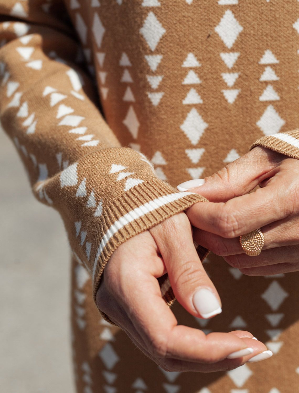 Платье жаккардовой вязки выполнено из мягкой пряжи на основе вискозы с добавлением кашемира. Модель свободного силуэта подходит для любой фигуры. Нежная пряжа очень комфортно ощущается на теле, сохраняя оптимальное тепло при этом не перегревая. Совет стилиста: жаккардовое платье отличная инвестиция в базовый гардероб, которая поможет создать дорогие образы. Носите с высокими сапогами удлиняя силуэт или плотными колготками.