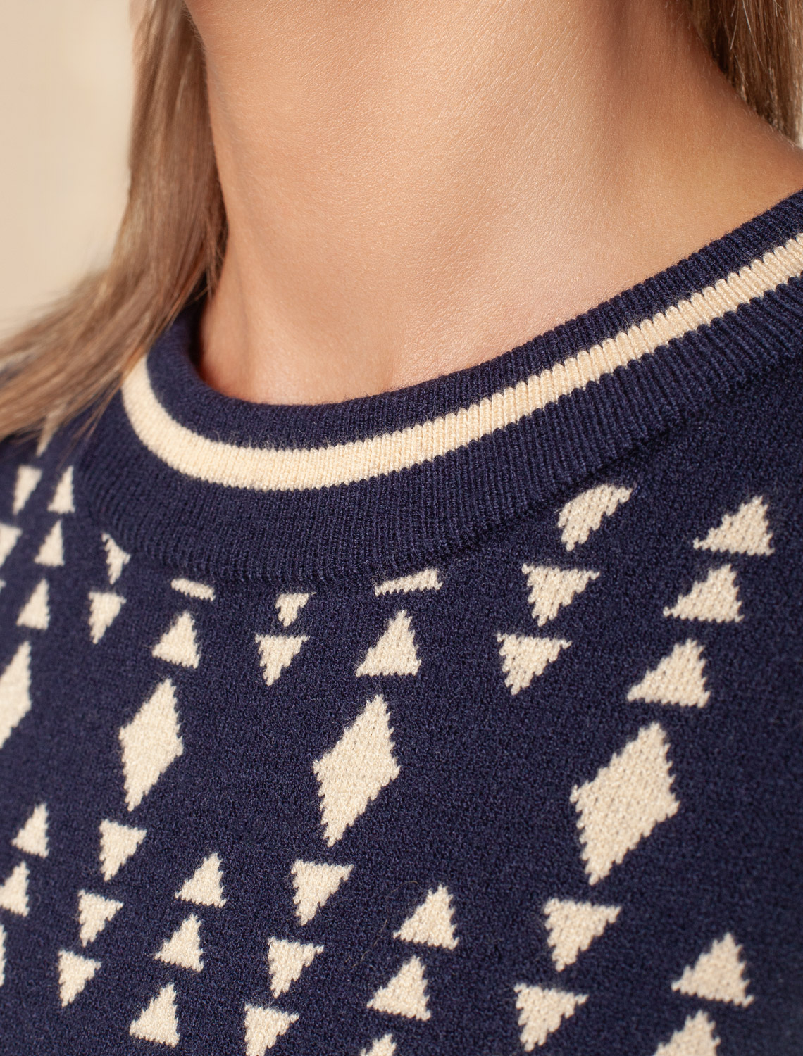 Ст.цена 2990р Платье жаккардовой вязки с кашемиром D32.111 синий-бежевый