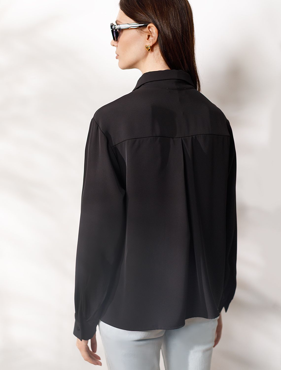 Блузка черного цвета из креп шифона сочетает в себе современные тенденции и классику, позволяя выглядеть элегантно как на торжественном событии, так и на деловой встрече. Материал обеспечивает легкость и комфорт, а изысканное кружево добавляет нотки женственности и утонченности. Нарядная отделка подчеркивает индивидуальность обладательницы, делая образ запоминающимся. Эта рубашка - универсальное решение для разных случаев: она идеально подходит для особых вечеров, торжеств или создания повседневного лука с акцентом на элегантность. Благодаря удачному крою изделие садится по фигуре, не сковывает движения и дарит ощущение свободы в течение всего дня. Деликатное кружево гармонично сочетается с фактурой ткани, формируя стильный внешний вид без лишней вычурности, такой вариант подойдет для создания романтического стиля или дополнения делового гардероба.