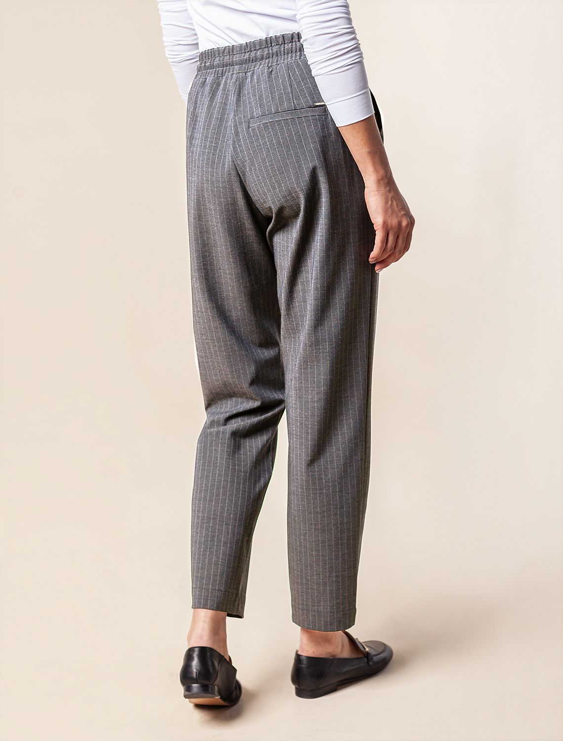 Ст.цена 3290р Брюки с поясом на резинке из премиальной поливискозы с эластаном D24.228 серый