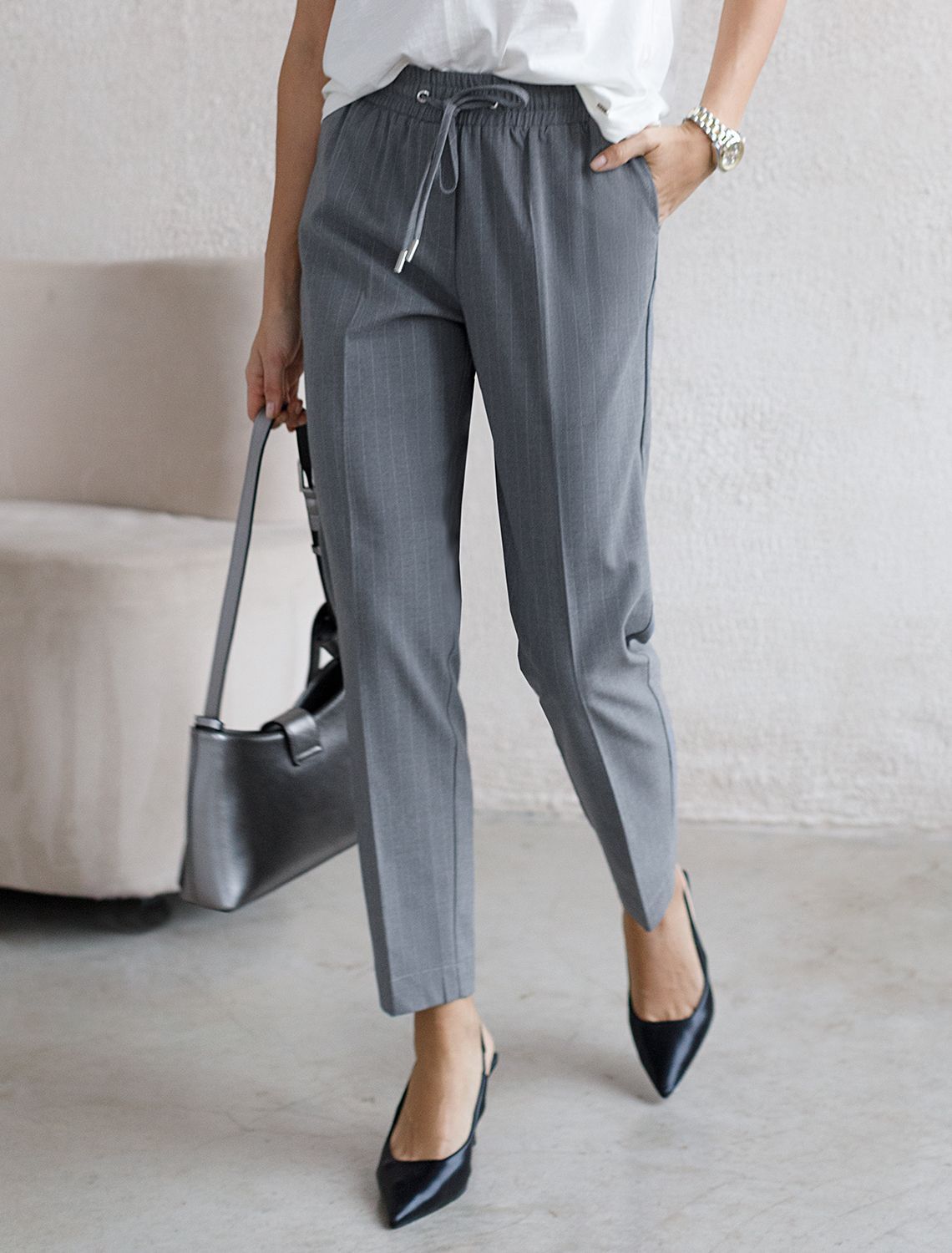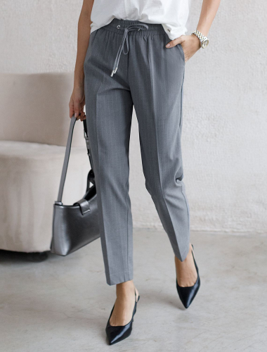 Ст.цена 3290р Брюки с поясом на резинке из премиальной поливискозы с эластаном D24.228 серый