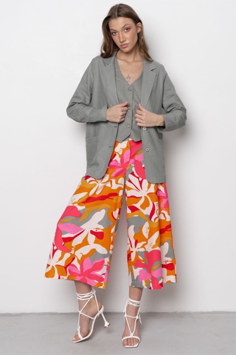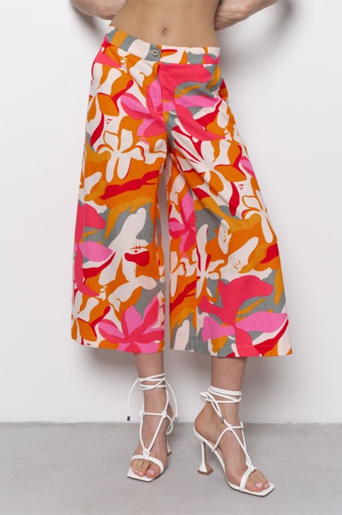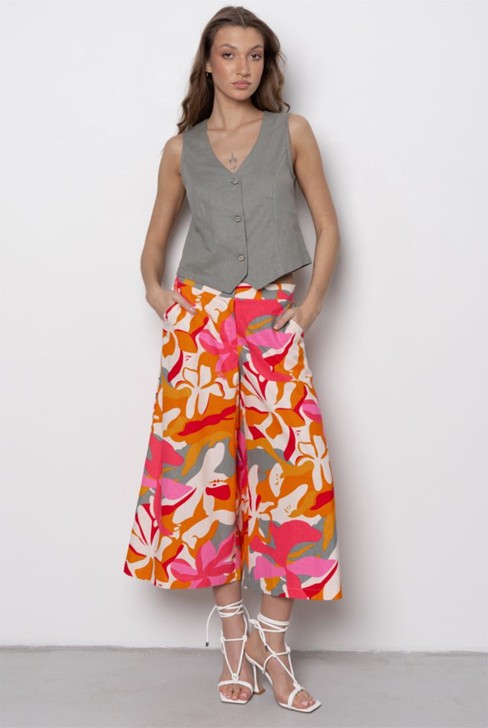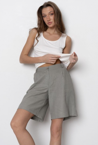 Брюки –кюлоты остаются трендом уже не один летний сезон. Это символ модной эволюции, объединяющий в себе элегантность, комфорт и универсальность. Брюки на пришивном поясе, замке –молнии и функциональными карманами в боковых швах. Модель представлена в двух цветовых решениях.