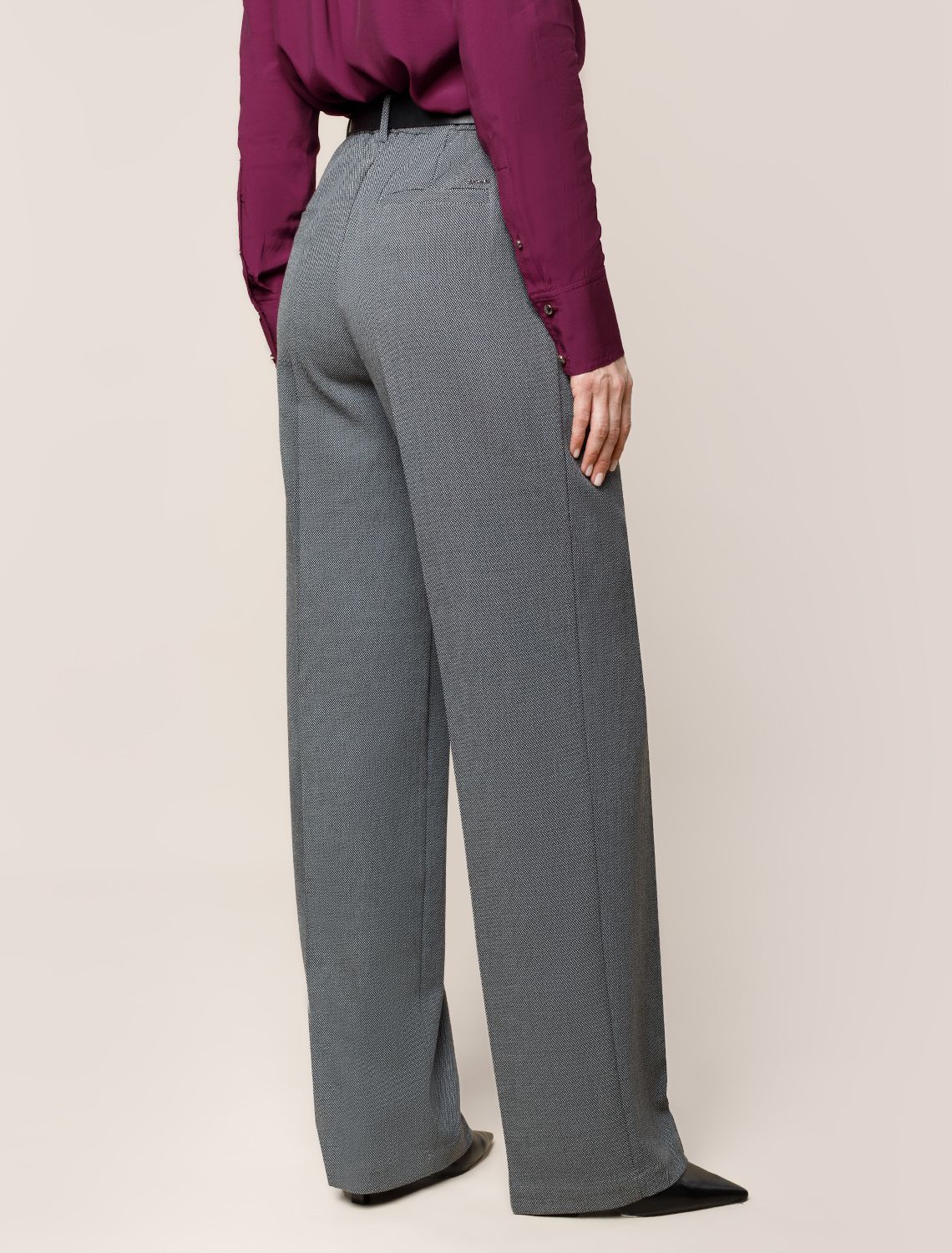 Ст.цена 3590р Брюки-палаццо из фактурной черно-серой поливискозы с эластаном D24.227 серый
