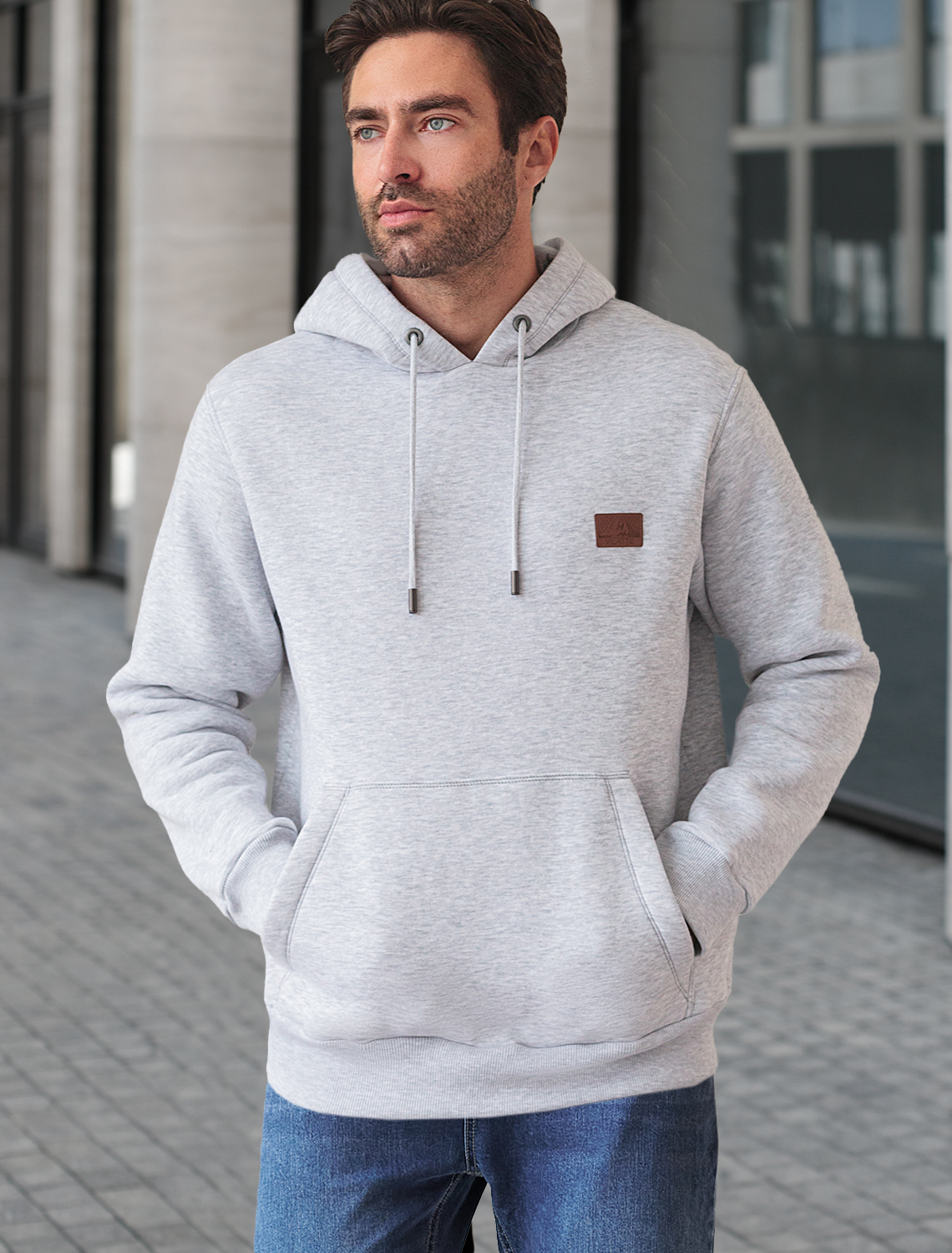 Ст.цена 3590р Худи из премиального футера трехнитки с начесом U49.036 св.серый меланж