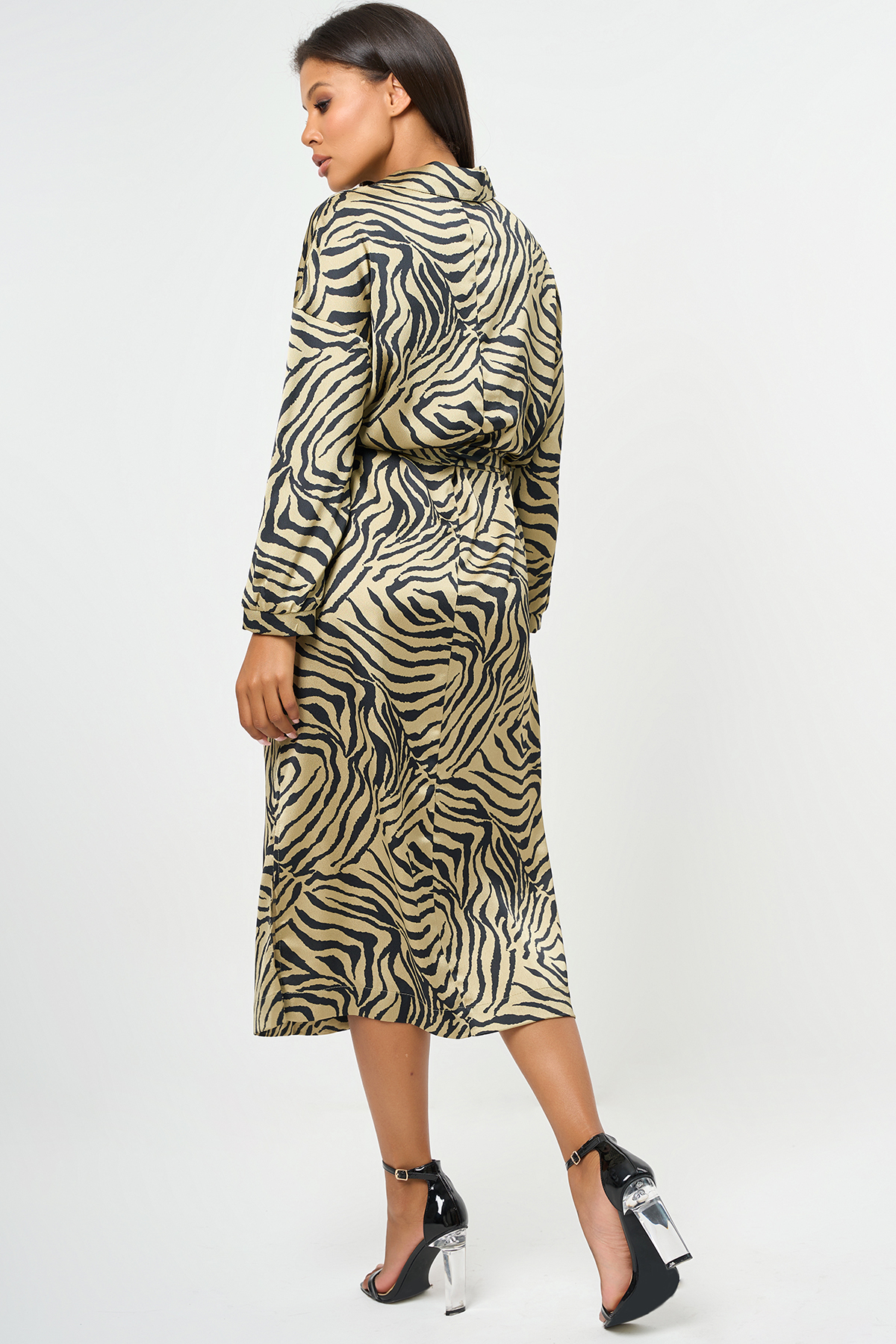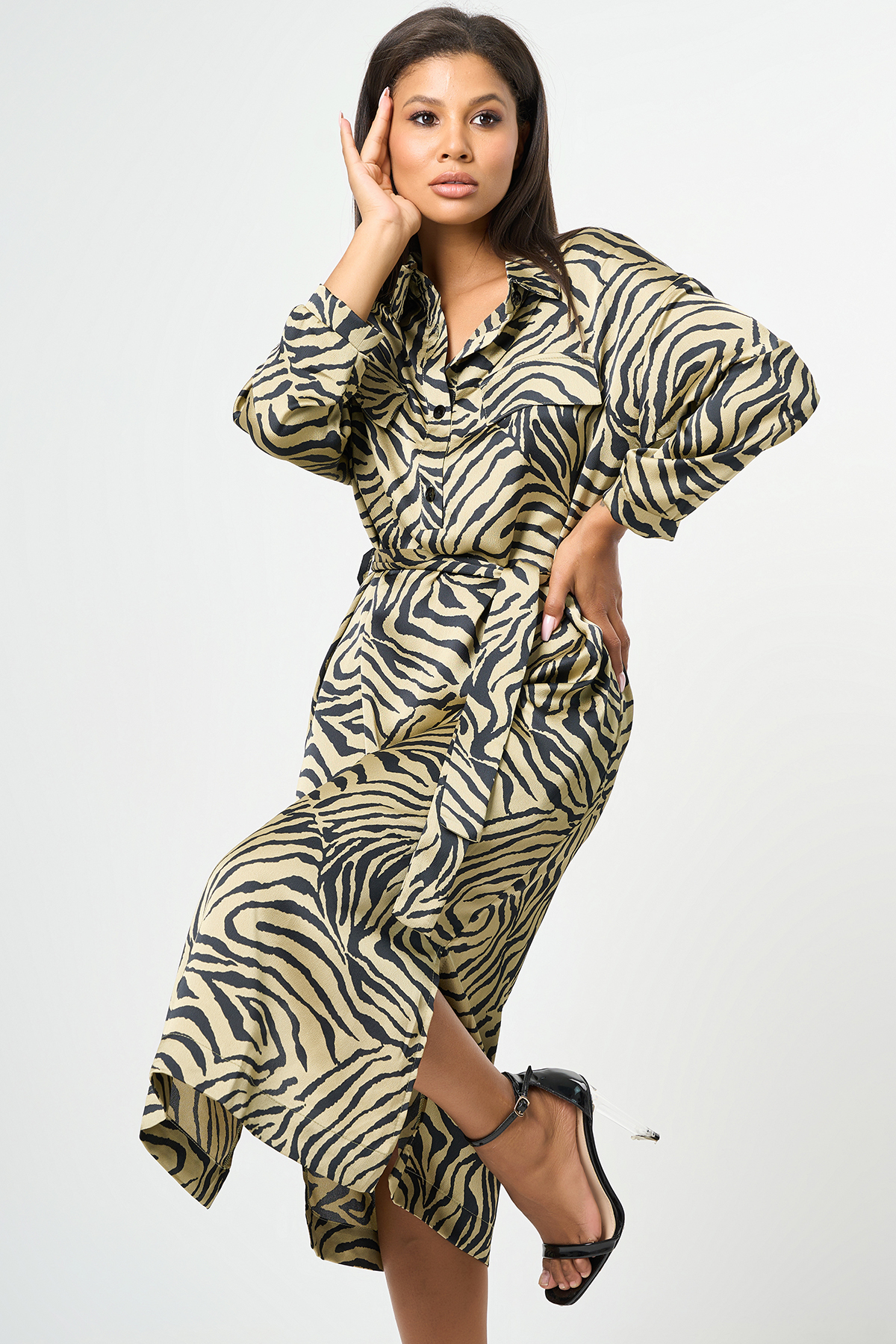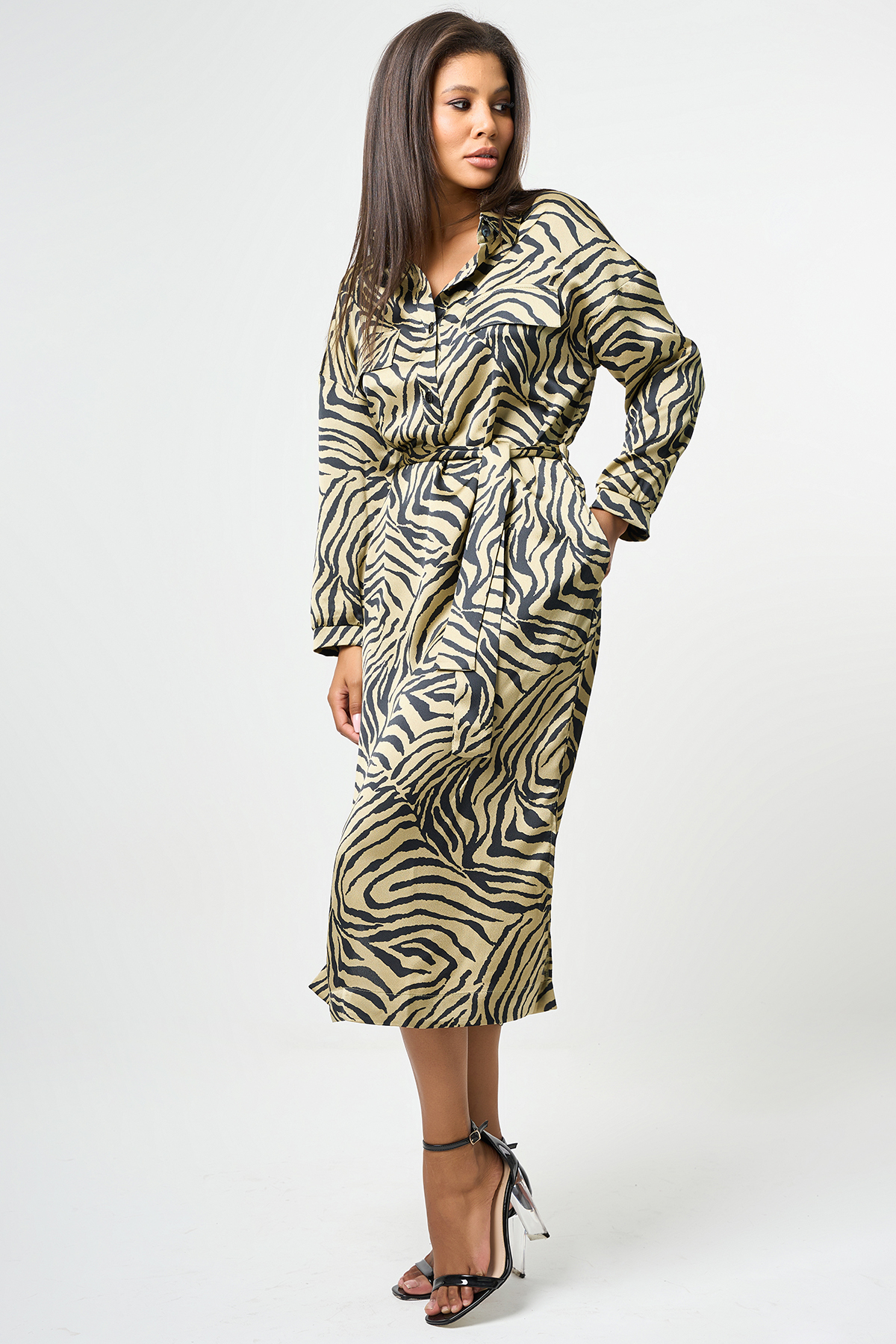 ст. цена3630руб.! Платье-рубашка миди с поясом "леопард" на оливковом
