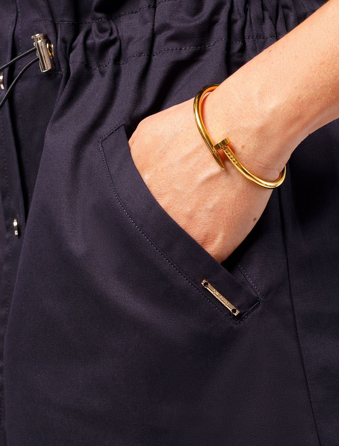 Платье в стиле сафари выполнено из тонкого хлопкового твила. Пышные рукава и пояс на кулисе с регуляторами. Модель дополнена боковыми карманами и застежкой на золотистые пуговицы. Благодаря наличию эластана в составе, изделие сохранит свой безупречный внешний вид в течении долгого времени. Обладает высокой воздухопроницаемостью, благодаря в платье будет комфортно даже в жаркое время года.