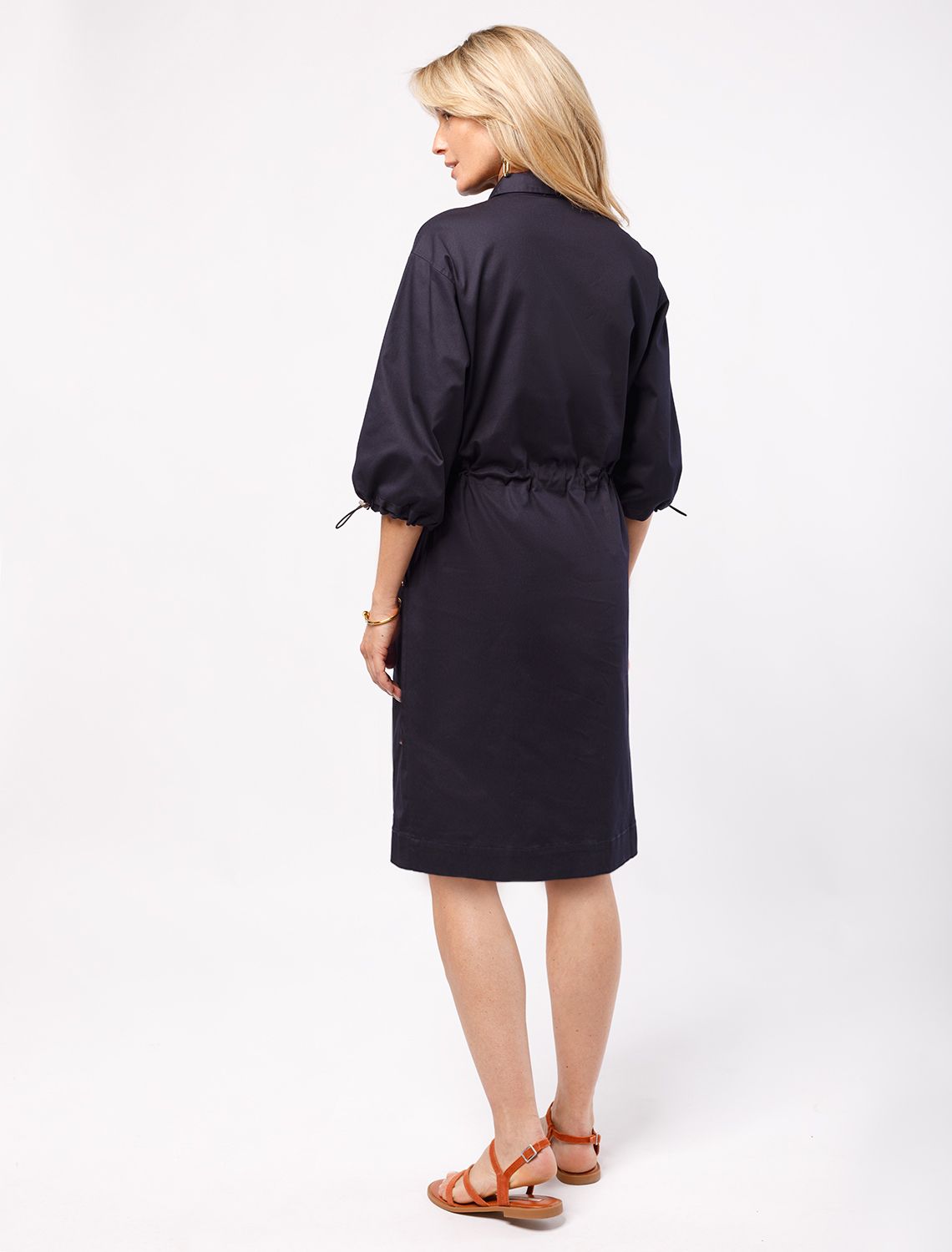 Ст.цена 3690р Платье на кулисе с регуляторами из хлопка с эластаном D22.217 темно-синий