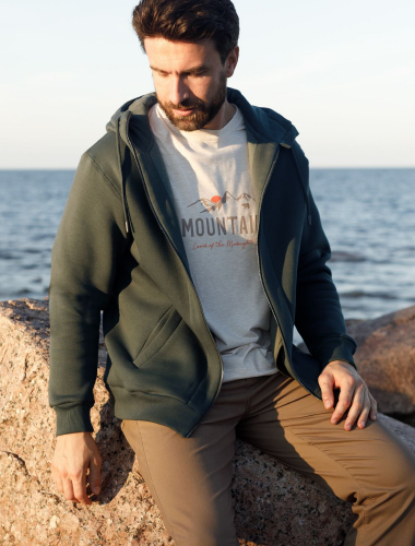 Худи на молнии выполнено из премиального эластичного футера трехнитки с теплым начесом. Модель с капюшоном и воротом стойка дополнена боковыми карманами и нашивкой с логотипом бренда из эко-кожи. Ранней осенью или поздней весной можно носить в качестве верхней одежды. Высококачественная фурнитура цвета темное серебро. Изделие сочетается в костюме с брюками U44.006