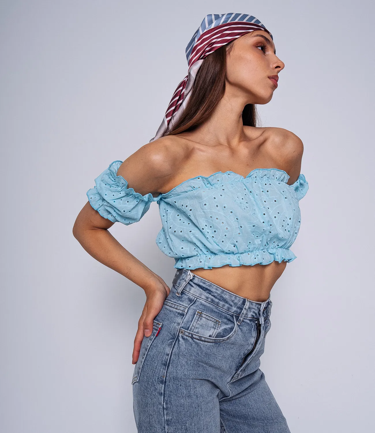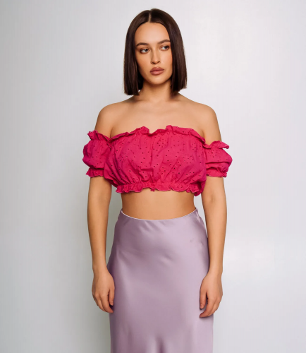 Нежный топ из 100% хлопка – отличный вариант для жаркой погоды. Топ подойдет для создания повседневного и романтического образа. Его можно сочетать с юбкой, брюками, джинсами, шортами.