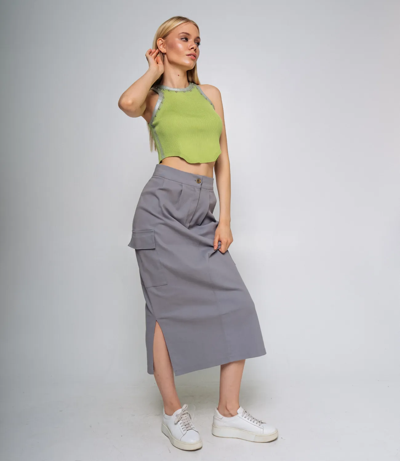 Топ – это одежда, которая подчеркивает женственность каждой девушки. Данная модель с металлическими заклепками по краю отлично подойдет для летнего сезона. Ее приобретают гостьи, которые ценят сочетание качества и цены. Силуэт подчеркивает привлекательность фигуры. Производитель умеет находить неординарные и модные решения. Для пошива использована ткань из 65% хлопка, 30% полиэстра, 5% эластана, которая характеризуется отличным качеством. Даже после многократных стирок изделие не утратит первоначальной индивидуальности. Вы сможете носить его с большим удовольствием. Обращайте внимание на цвет. Он является насыщенным и полностью соответствует фото на сайте. Чтобы вы не сомневались в размере, мы предоставили на странице таблицу. Воспользовавшись ею, вы сами сможете сделать мерки и убедиться. Установленная нами цена является доступной. Подарите себе удовольствие быть неповторимой! Рост 173см, 84-58-89.