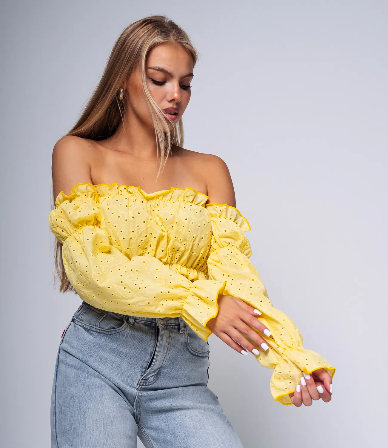 Нежный топ из 100% хлопка – отличный вариант для жаркой погоды. Топ подойдет для создания повседневного и романтического образа. Его можно сочетать с юбкой, брюками, джинсами, шортами.
