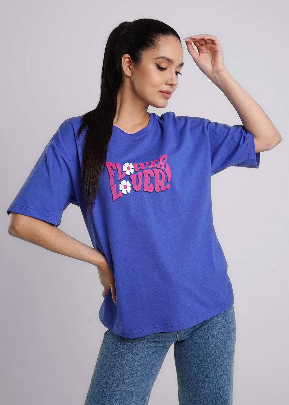 Джемпер оверсайз из хлопкового трикотажного полотна. Короткий спущенный рукав. Круглый вырез горловины обработан рибаной. По переду принт вспенкой.
