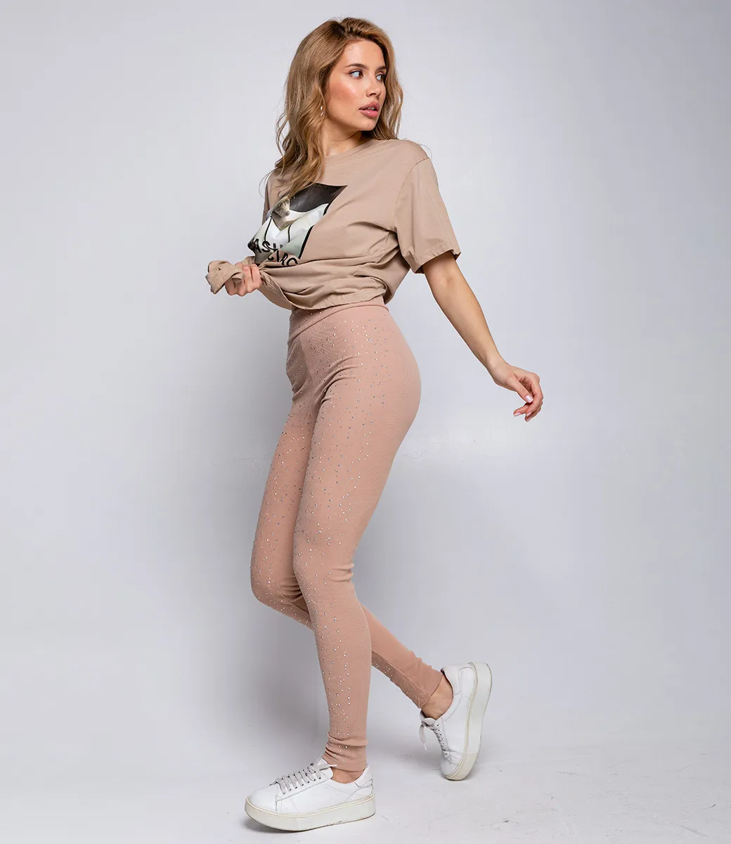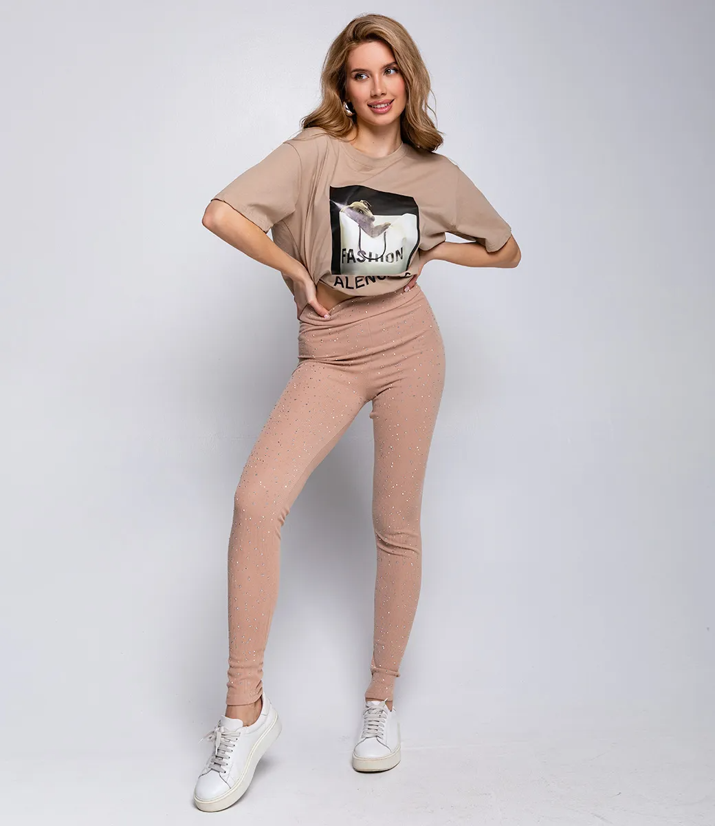 Леггинсы – это вещь, которая выделяет женственность, уникальность и привлекательность каждой представительницы прекрасного пола. Данная модель подойдет для любого сезона. Ее предпочитают покупательницы, которые ценят сочетание эксклюзивности, идеального качества и цены. Фасон леггинсов подчеркивает привлекательность и изящность фигуры. Изготовитель знает, как найти и разработать уникальные, стильные и модные решения. Для изготовления выбрана ткань, состоящая из 65% хлопка, 30% полиэстера и 5% эластана, которая характеризуется отличным качеством. Даже после многих стирок леггинсы не потеряют своей первоначальной индивидуальности и привлекательности. Вы сможете носить их с большим удовольствием. Обратите внимание на цвет – он является насыщенным и полностью соответствует фотографии на сайте. Чтобы вы были уверены в размере, мы предоставили на сайте таблицу. Воспользовавшись ею, вы сможете самостоятельно сделать мерки и убедиться. Установленная нами цена является доступной и приемлемой. Подарите себе удовольствие быть элегантной, женственной и неповторимой в леггинсах с украшениями в виде стразов!