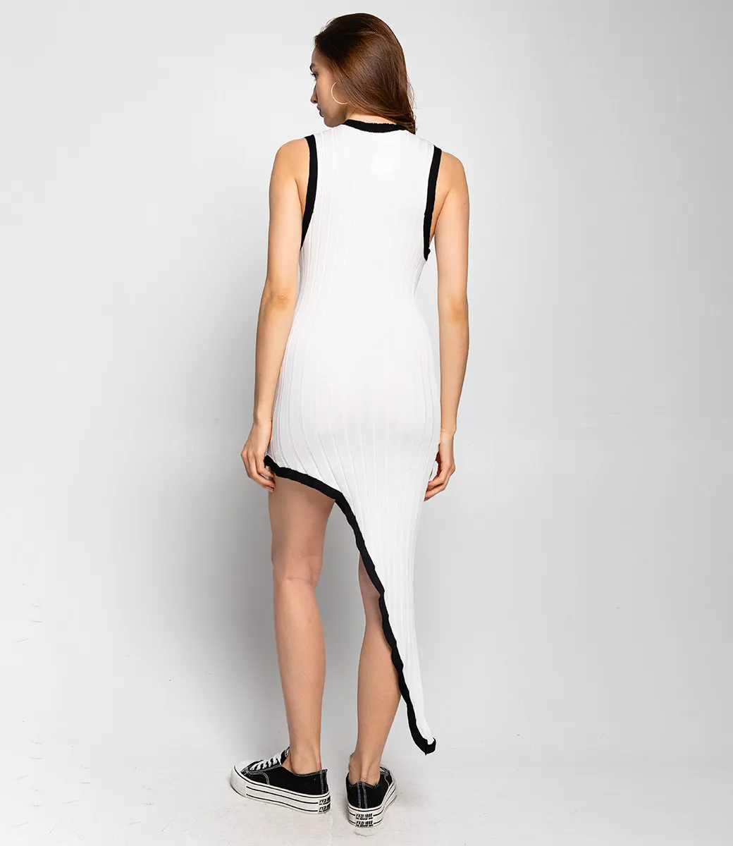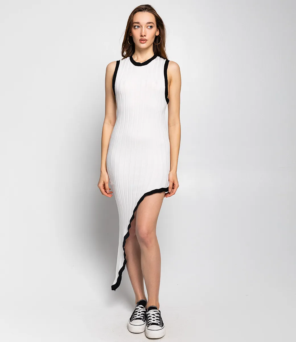 Это платье — прекрасный выбор для вашего магазина, предлагая стильный и универсальный дизайн, который станет отличным дополнением к гардеробу ваших клиентов. Платье имеет асимметричный крой, что придает ему оригинальность. Платье без рукавов подчеркивает линию плеч и рук, создавая легкость в образе. Изделие выполнено из плотного трикотажного материала с рифленой текстурой, что обеспечивает хорошую посадку и комфорт при носке. Черная окантовка подчеркивает линии платья и создает эффектный акцент. Асимметричный подол добавляет модный штрих и визуально удлиняет ноги. Ткань обладает эластичностью, позволяя платью удобно облегать фигуру. Изготовлено из ткани 65% хлопок, 35% полиэстер и 5% эластан, платье обеспечивает отличное качество и приятные тактильные ощущения. Независимо от сезона, она станет любимым элементом в гардеробе ваших клиентов. На странице сайта доступна таблица размеров, что позволит вашим покупателям легко найти подходящий вариант. Установленная цена делает это платье доступным для широкой аудитории, что обеспечит вам высокий уровень продаж. Рост 168 см, 85-63-92.