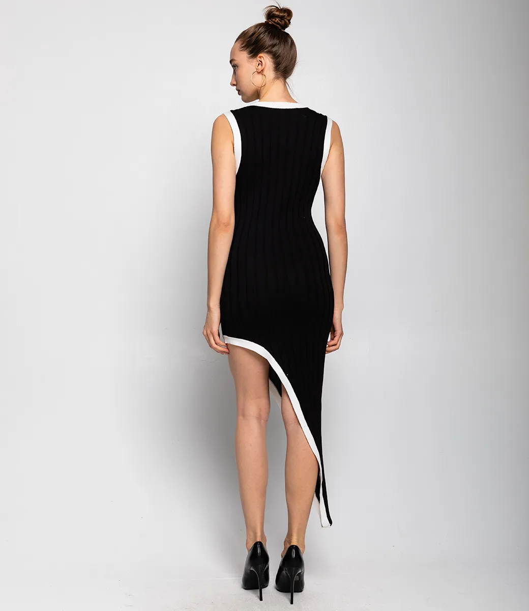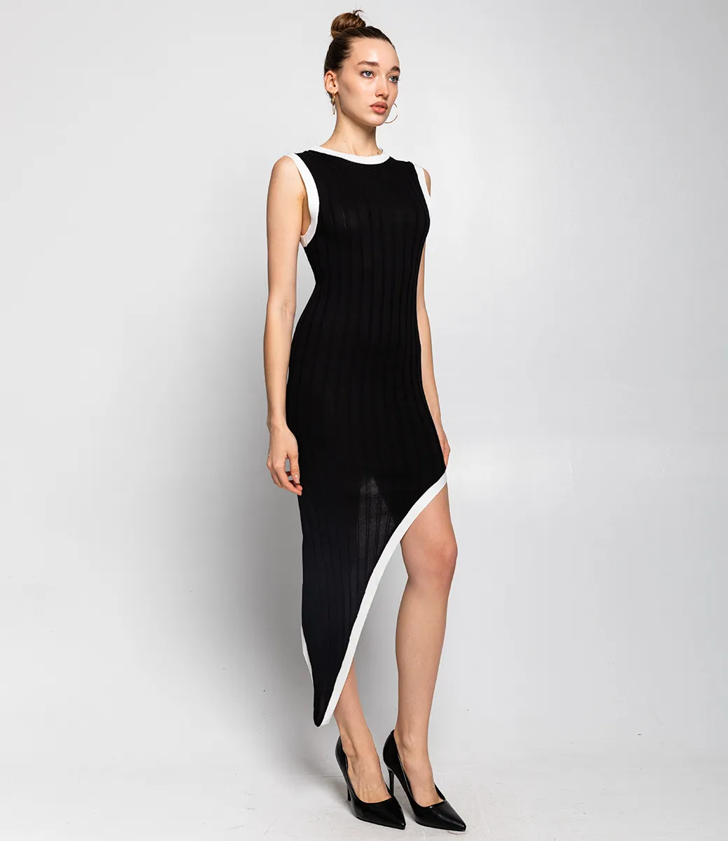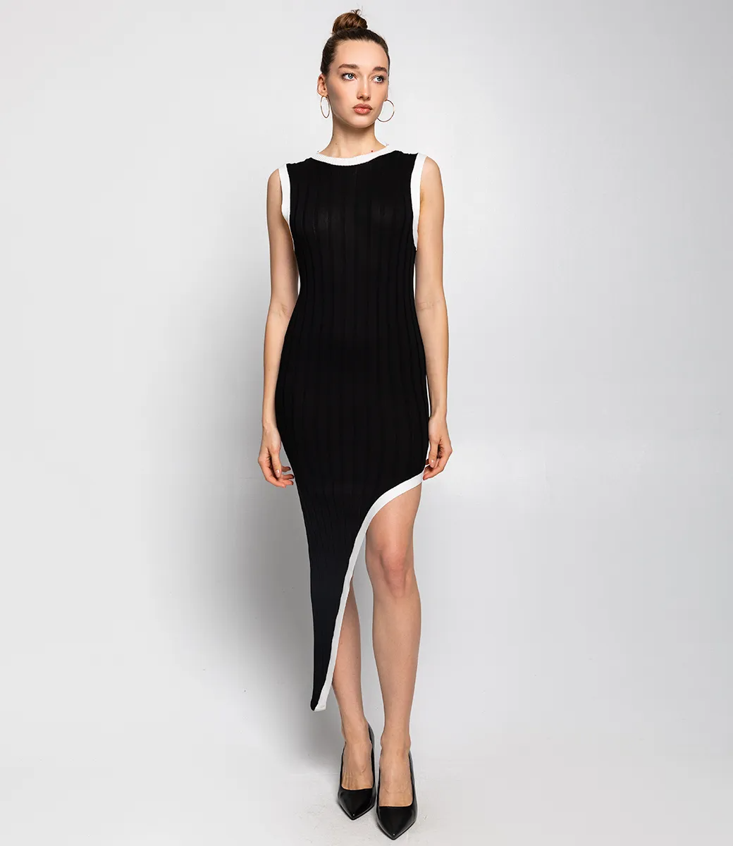 Это платье — прекрасный выбор для вашего магазина, предлагая стильный и универсальный дизайн, который станет отличным дополнением к гардеробу ваших клиентов. Платье имеет асимметричный крой, что придает ему оригинальность. Платье без рукавов подчеркивает линию плеч и рук, создавая легкость в образе. Изделие выполнено из плотного трикотажного материала с рифленой текстурой, что обеспечивает хорошую посадку и комфорт при носке. Черная окантовка подчеркивает линии платья и создает эффектный акцент. Асимметричный подол добавляет модный штрих и визуально удлиняет ноги. Ткань обладает эластичностью, позволяя платью удобно облегать фигуру. Изготовлено из ткани 65% хлопок, 35% полиэстер и 5% эластан, платье обеспечивает отличное качество и приятные тактильные ощущения. Независимо от сезона, она станет любимым элементом в гардеробе ваших клиентов. На странице сайта доступна таблица размеров, что позволит вашим покупателям легко найти подходящий вариант. Установленная цена делает это платье доступным для широкой аудитории, что обеспечит вам высокий уровень продаж. Рост 168 см, 85-63-92.