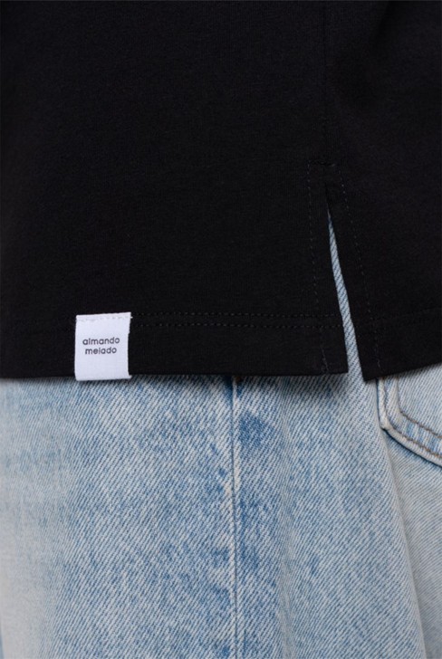 Модель декорирована тематическим минималистичным принтом и брендовой нашивкой. В боковых швах разрезы.