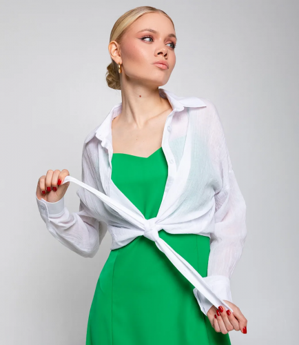 Чтобы вы были уверены в размере, мы предоставили на сайте таблицу. Воспользовавшись ею, вы сможете сами сделать мерки и убедиться. Предложенная нами цена является доступной и приемлемой. Подарите себе удовольствие быть элегантной и неповторимой в нашем легком летнем платье+рубашке! Рост модели 173 см., 84-58-89.