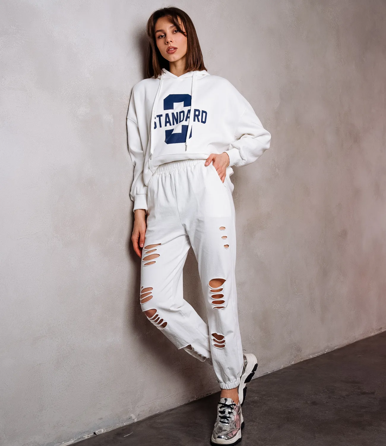 Хлопковые спортивные брюки с разрезами по всей длине и резинками - это модная и удобная модель, которая подойдет как для тренировок, так и для повседневного использования. Брюки выполнены из хлопкового материала, который обеспечивает комфорт, мягкость и хорошую воздухопроницаемость. Разрезы по всей длине брюк создают интересный и стильный вид. Они добавляют динамичности и придают образу некую игривость. Резинки на брюках - это удобный элемент дизайна, который обеспечивает правильную посадку на талии и предотвращает скатывание или спадание брюк. Рост модели 173 см, 84-58-89.
