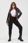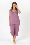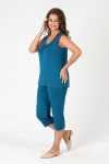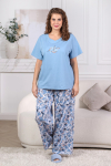 Костюм из трикотажного полотна «кулирка» в комбинации двух видов в единой цветовой гамме: гладкокрашеного и с набивным рисунком, состоящий из футболки и брюк.