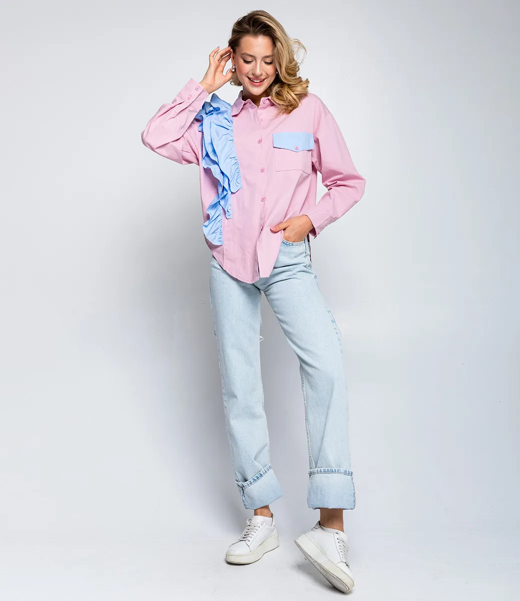 Рубашка – это вещь, которая подчеркивает привлекательность каждой женщины. Модель рубашки с длинным рукавом отлично подойдет для осеннего сезона. Ее предпочитают покупательницы, которые ценят сочетание качества и стоимости. Фасон подчеркивает красоту фигуры. Производитель знает, как разработать уникальные и стильные решения. Для пошива использована ткань 100% хлопок, которая характеризуется безупречным качеством. Даже после многочисленных стирок изделие не потеряет первоначальной привлекательности. Вы сможете носить его с радостью. Обратите внимание на яркую деталь в виде валанов. Она добавляет уникальность и подчеркивает общий образ. Чтобы вы были уверены в размере, мы представили на странице таблицу. Воспользовавшись ею, вы сможете сами сделать мерки и удостовериться. Установленная нами цена является доступной. Не откажите себе в удовольствии быть элегантной! Рост модели 174, 80-58-88.