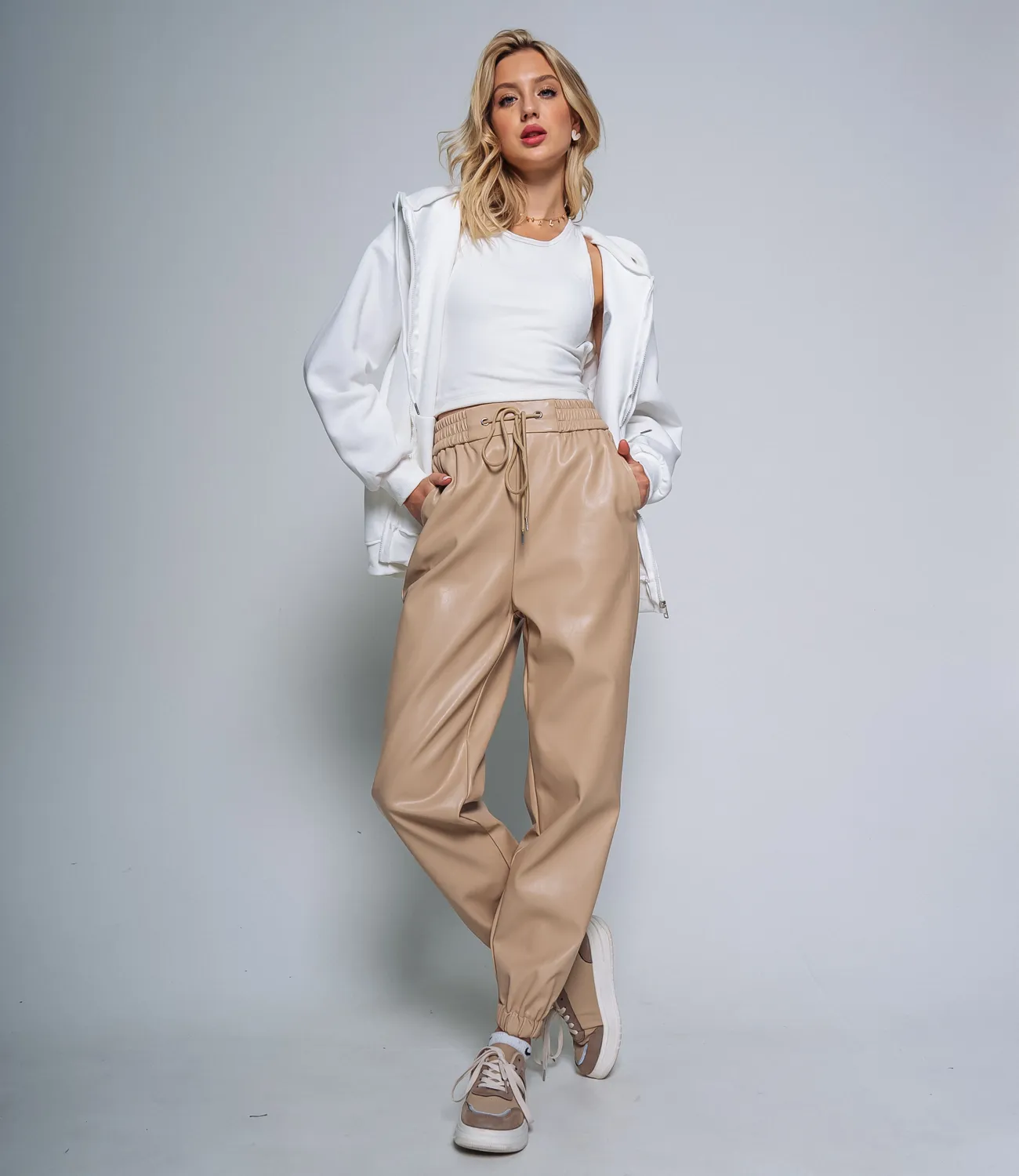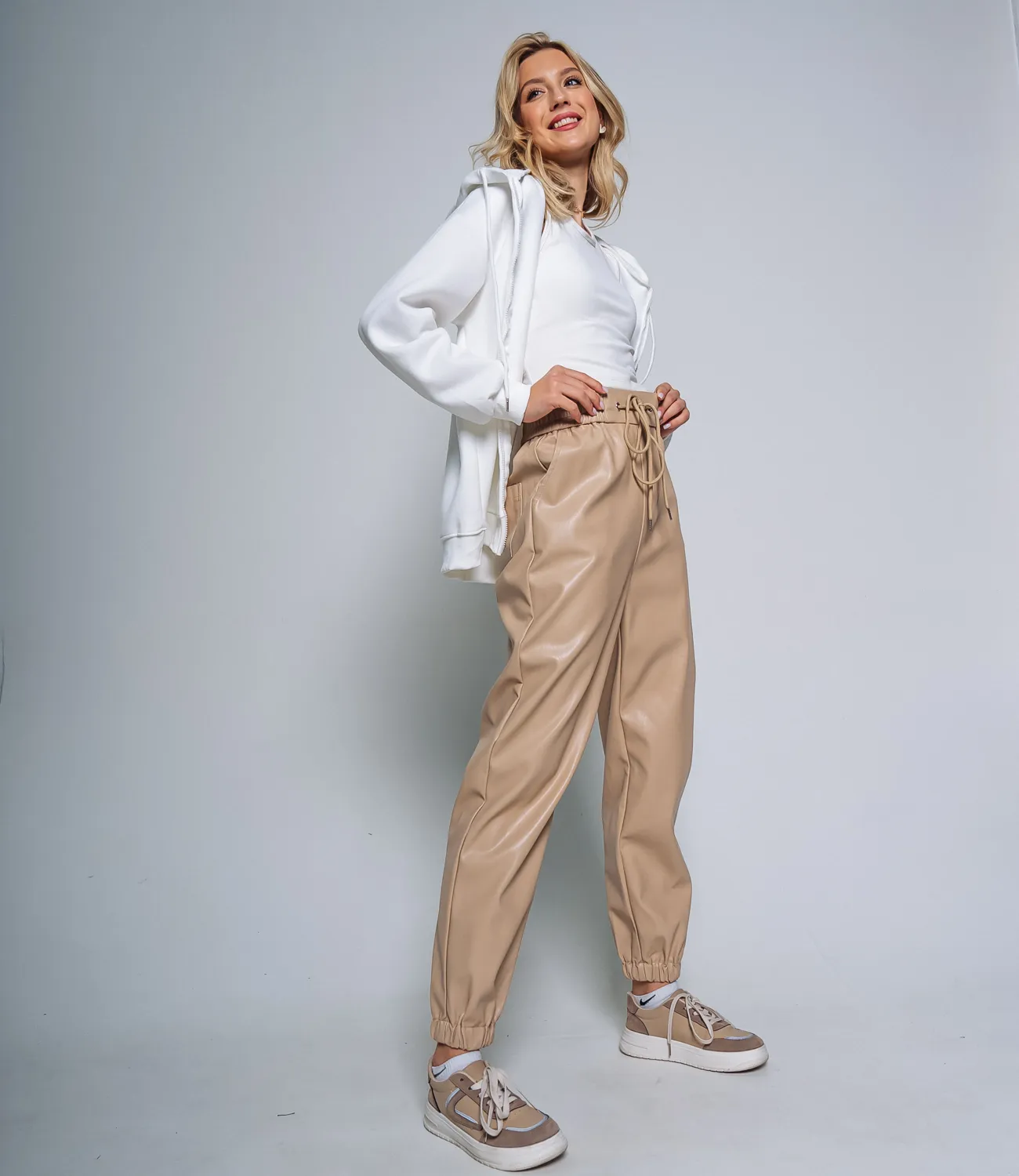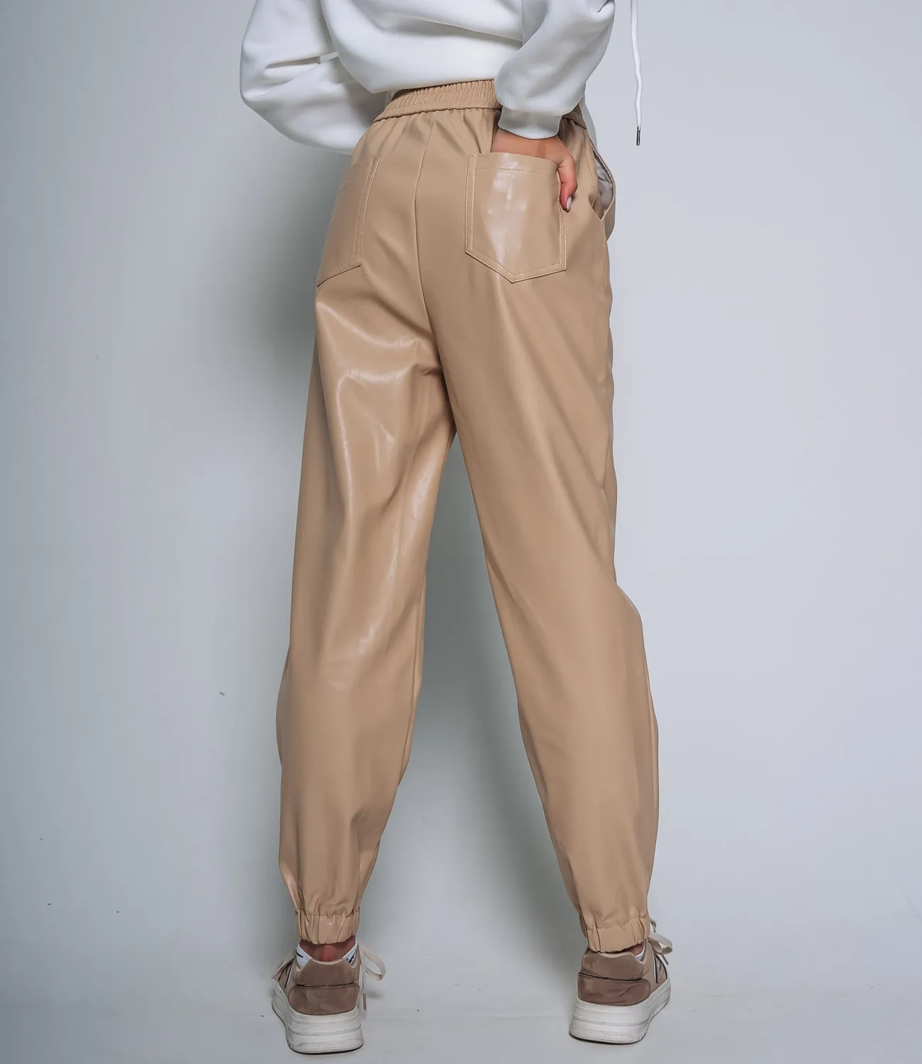 Актуальная прямая модель, высокая талия скрывает недостатки. Брюки изготовлены из качественной экокожи, имитирующей настоящую кожу. Защипы выгодно подчеркивают талию и делают бедра более выразительными. Модель позволяет использовать их в повседневной носке и в офис, и даже в школу. Также можно сочетать со спортивным и классическим стилем, дополнив пиджаком или свитшотом.